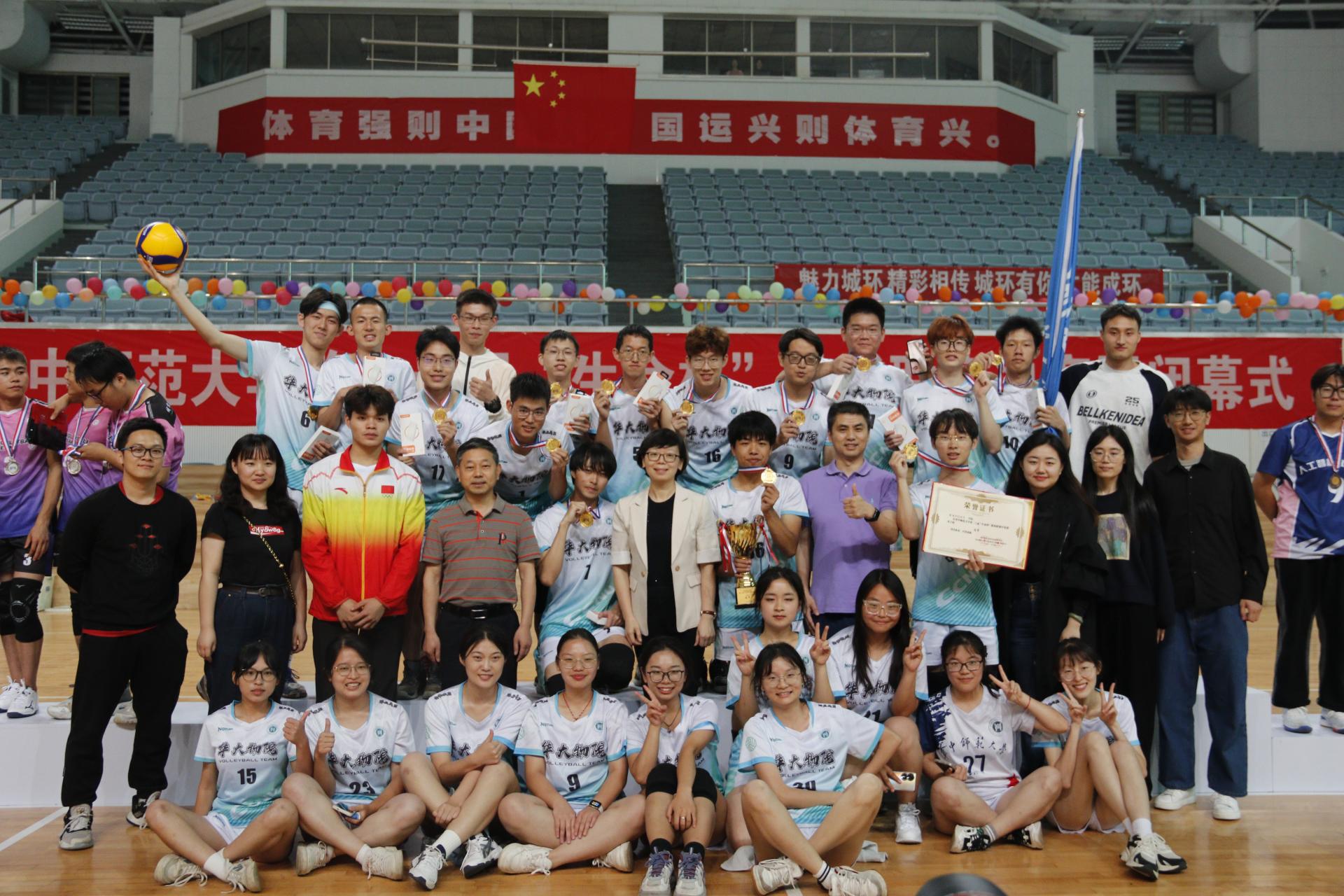 在第三局比赛中,物院队员高高跃起,果断扣杀得分,队员们灵活走位,反应迅速,巧妙地传接配合,坚韧地巩固防守。最终,物院男排获得第二十届“生命杯”排球联赛冠军,物院女排获得第五名。物理学院、心理学院、国际文化交流学院、生科院获评本次比赛“体育道德风尚奖”。