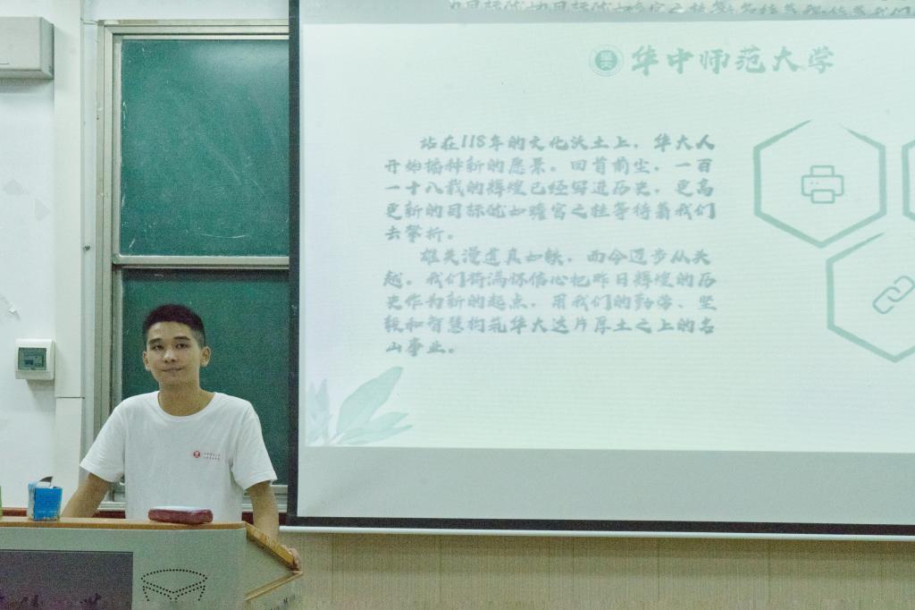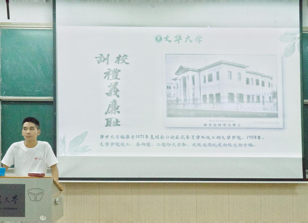 在讲述百年辉煌历程这一部分时,李宇航着重介绍了陈时、张舜徽等华师校史上的重要人物。正是无数个华师人的坚持与拼搏,才让这所百年名校无论在何种风雨如晦的时代都薪火相传、生生不息。这正是华师精神的重要传承,说明了忠诚博雅、朴实刚毅应成为每个华师人的座右铭。