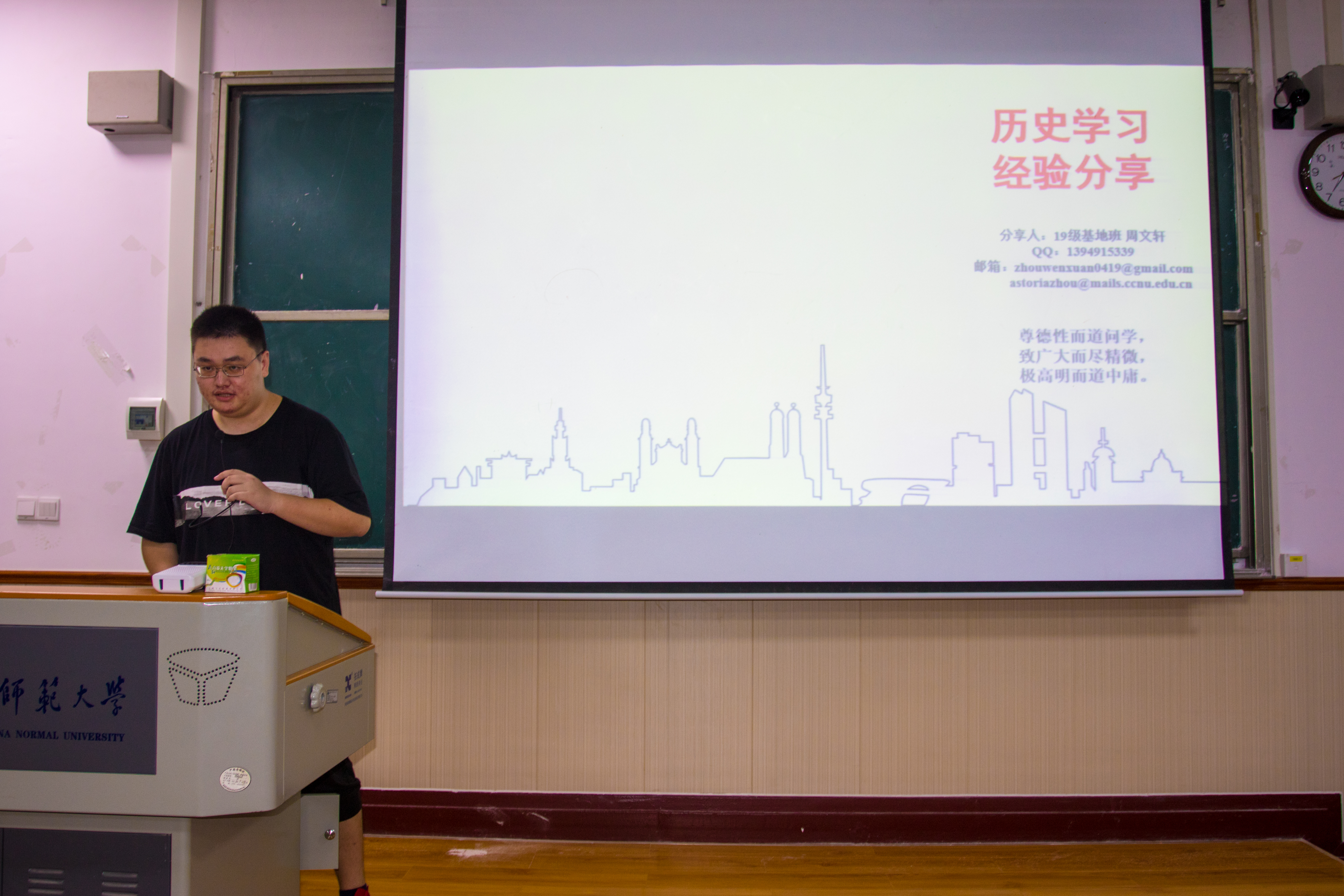 来自19级公费师范班的杨晖在大一时就获得了丹桂奖学金,并曾任华大青年传媒中心新媒体部副主任。她对师范生的基本技能训练进行了介绍,并强调了平时自主练习与社团锻炼的作用。来自19级基地班的周文轩连续两年学分绩排名专业第三,他详细介绍了选课的重要性、上课高效率做笔记的方法以及课后将知识系统化吸收学习的策略。来自19级文化遗产与文化产业专业的朱晨熹曾获博雅银桂奖学金,并曾任历史文化学院团委学生会宣传部组委,他对文遗专业进行了基本介绍,并推荐了相应参考书目。
