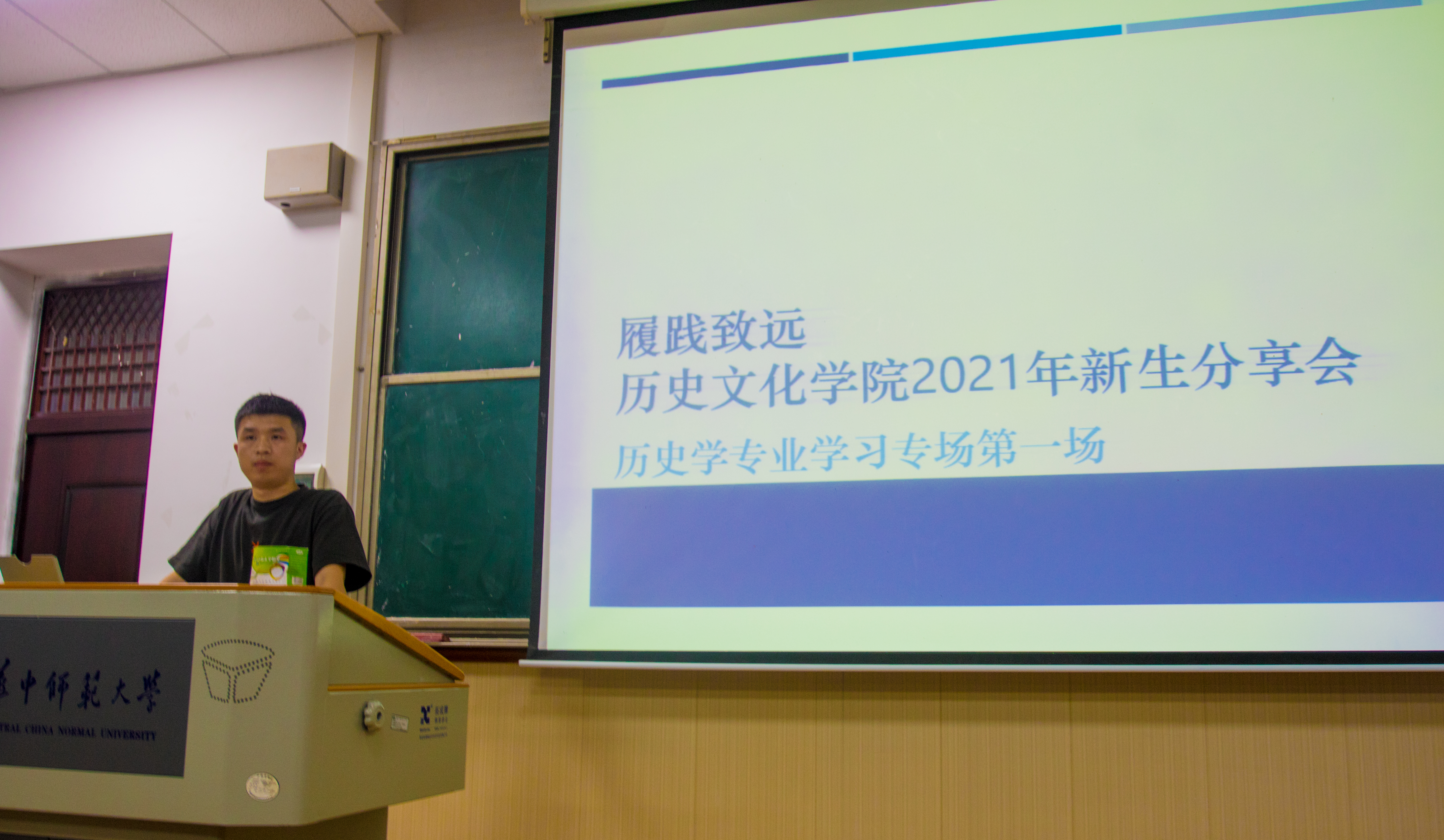 华大青年讯(通讯员 欧阳李奕 陈星余)9月25日晚,历史文化学院“履践致远·2021年新生分享会”于历史文化学院1201教室举行,团委书记、2021级新生辅导员钟佩文和2021级兼职辅导员高成龙出席本次活动,全体2021级本科新生参加。本次分享会以历史学专业学习经验分享为主题,由来自2019级的三位优秀学生代表杨晖、周文轩、朱晨熹主讲,旨在培养新生学习兴趣,解答常见疑惑,提供方法帮助,树立优秀目标,激发学习动力。