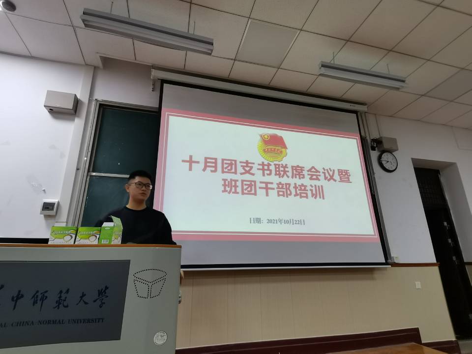 华大青年讯(通讯员 雷岩 罗君怡 彭雨彤 谭欣)10月22日晚,历史文化学院团委十月团支书联席会议暨班团干部培训于1201教室举行,历院团委副书记孔垂浩出席并主持会议,历院团委组织部及马列分会全体成员和2019级、2020级、2021级各支部团支书、2021级各班班长共同参与本次会议。会议旨在对新任团支书和班长进行培训并落实相关工作、进一步推进班团一体化改革、加强团支部建设。会议设置了团支书基础业务讲解、班团建设经验分享、班团干部培训和现场答疑四个环节。