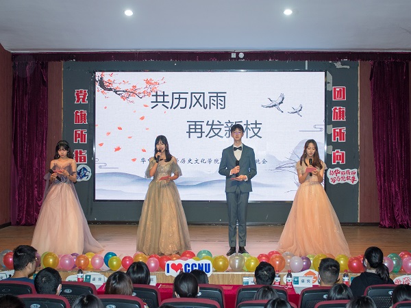 华大青年讯(通讯员 孙龚泽 陈星余 潘敏 欧阳李奕)10月24日下午,历史文化学院2021年迎新晚会于华大青年报告厅举行,出席嘉宾有历院团委书记兼2021级辅导员钟佩文、2021级1班班主任李明慧、2021级3班班主任王含梅、历院团委副书记孔垂浩和谢翘鸿。本次迎新晚会以“共历风雨,再发新枝”为主题,由来自历院主持队的高嘉翼、林泽贤、曹艺萱、王琳主持,全体2021级新生参加。