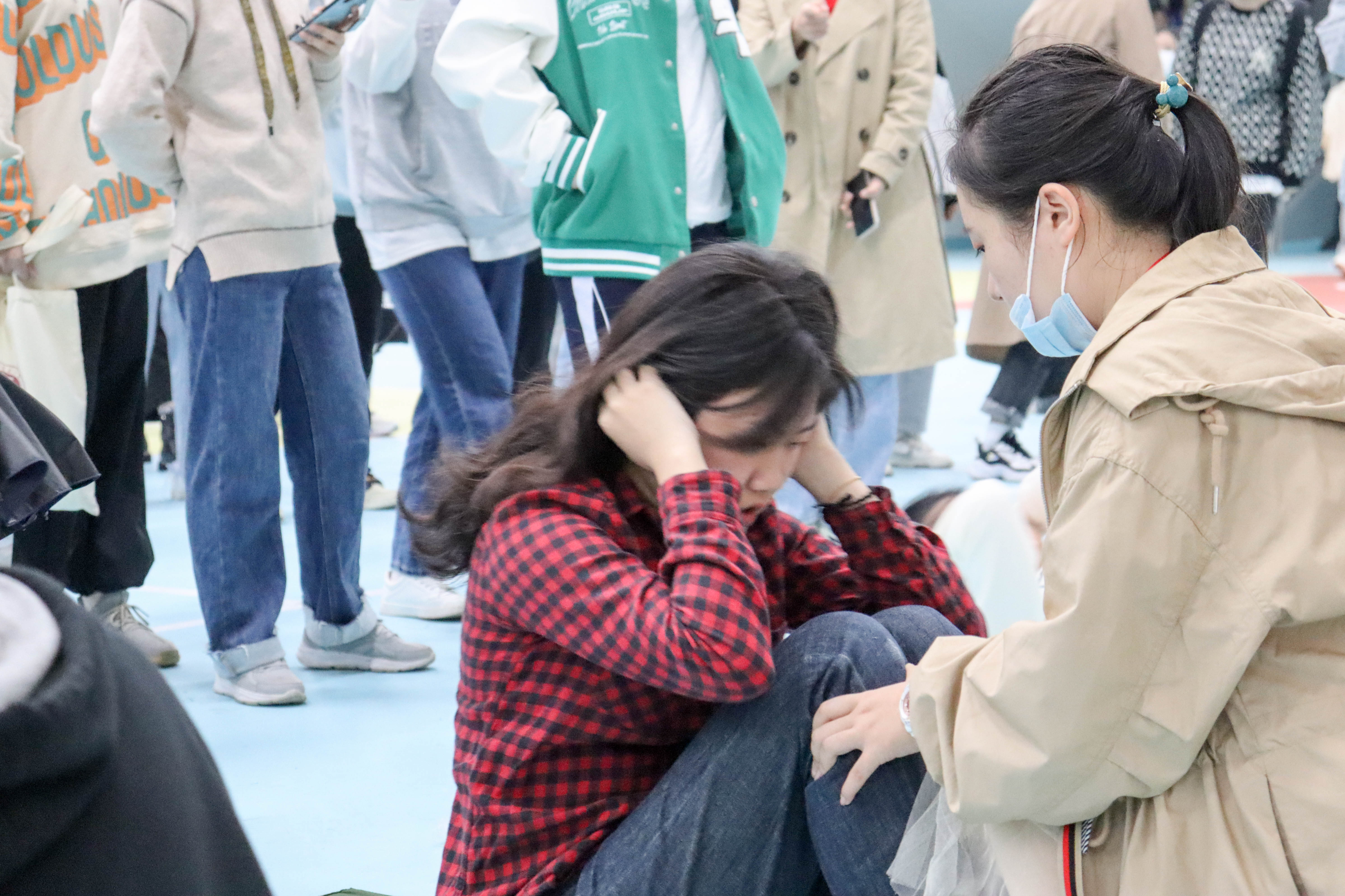 受到比赛现场氛围的感染,历院选手们加快了速度,反复躺下、起来。在一位选手起来后,后面的队友就立即躺下,尽可能地节省比赛时间。激烈的赛场引来了很多同学的围观,同学们的呐喊声此起彼伏,志愿者们也及时地为赛后的选手们送上热水,提供干净舒适的休息地点。