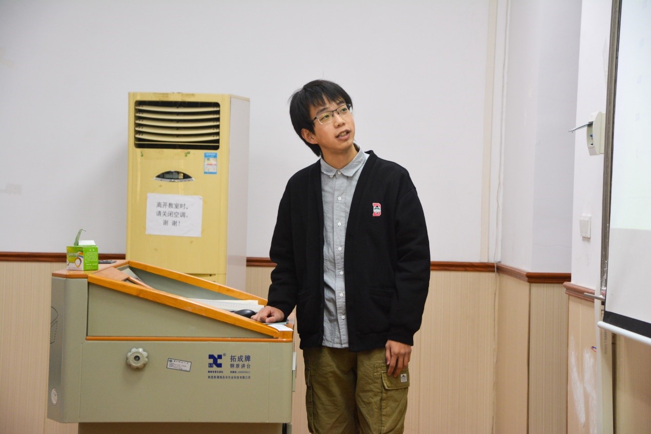 在主持人简要介绍了本次活动后,两个科研小组先后展示了他们的初步的项目成果。来自“国创计划”培育组的张艺馨首先发言,他展示了“宇文护纂位未竟与对外战争联系”这一项目的初步研究成果。其后,来自“挑战杯”培育组的黄尧介绍了项目“wish list”,向同学们展示了其项目背景、项目内容、项目运营方式等内容。