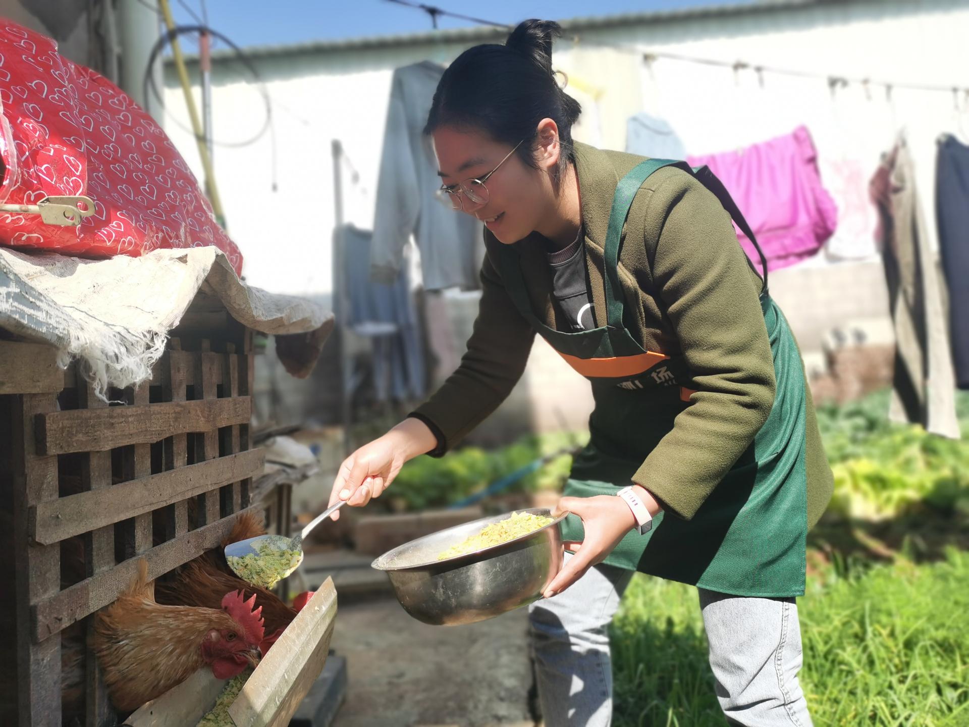 志愿者赵茜怡将喂养家禽作为劳动实践项目之一。她把剁碎的菜叶和玉米面搅拌好做成饲料。当小鸡们都争相探出头来啄食时,她心里升起一种自豪骄傲的情感。赵茜怡表示,在今后的生活中她也会认真主动地参与每一次劳动,帮助父母减轻负担,提升劳动技能,踏踏实实做好生活中的每件事情,在劳动实践中成长,不断磨练自我。