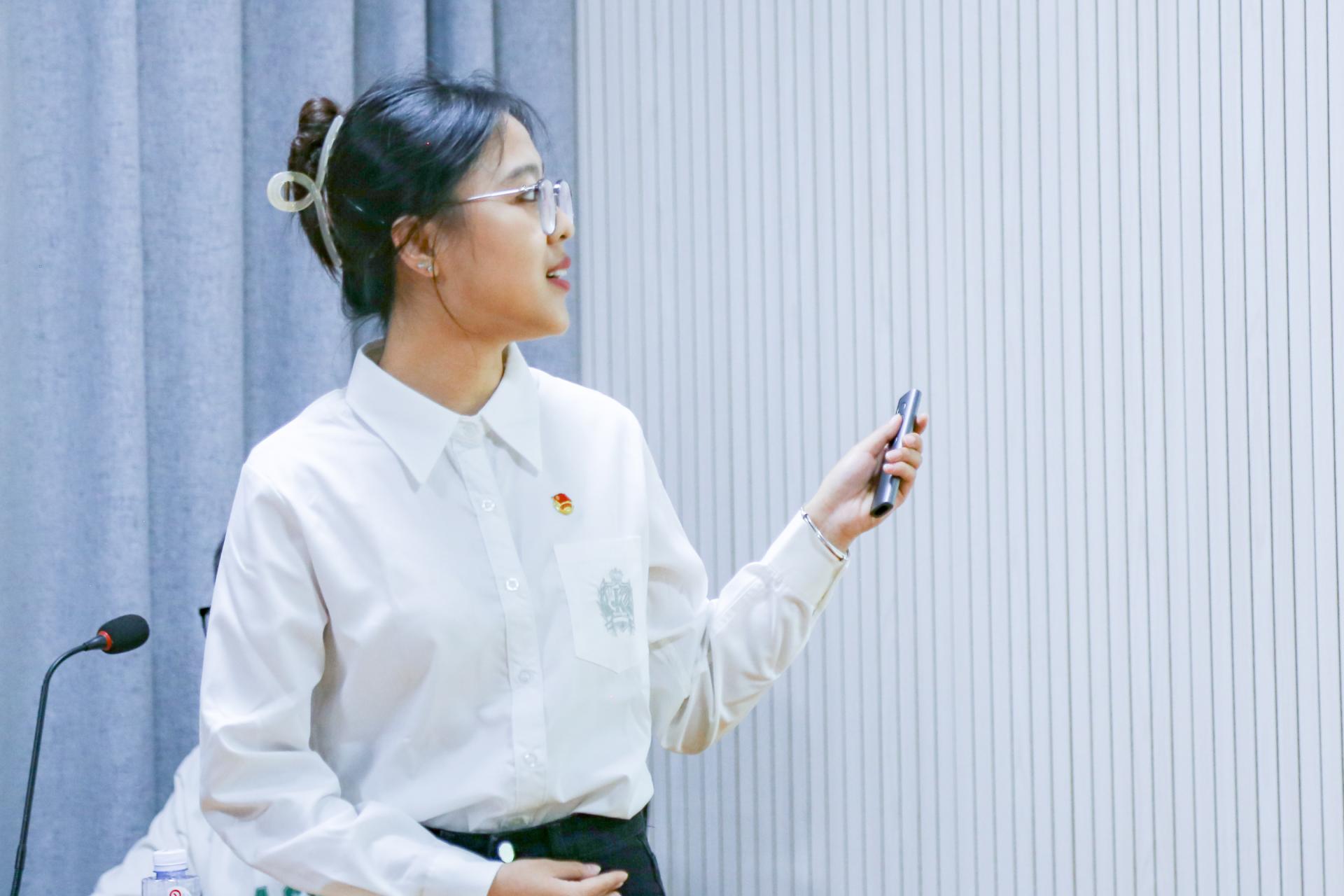 2021级何雨鑫用“失败固然痛苦,但更糟的是从未去尝试”一句,勉励自己勇敢面对挑战,不断突破已有的成绩。罗俊祎则凭“平和而执着,谦虚而无畏”的态度展望未来的学习,攀登下一座高峰。孙宁茜也以“青矜之志,履践致远”为题展开答辩,认为只有追随理想才能更好扬帆起航。