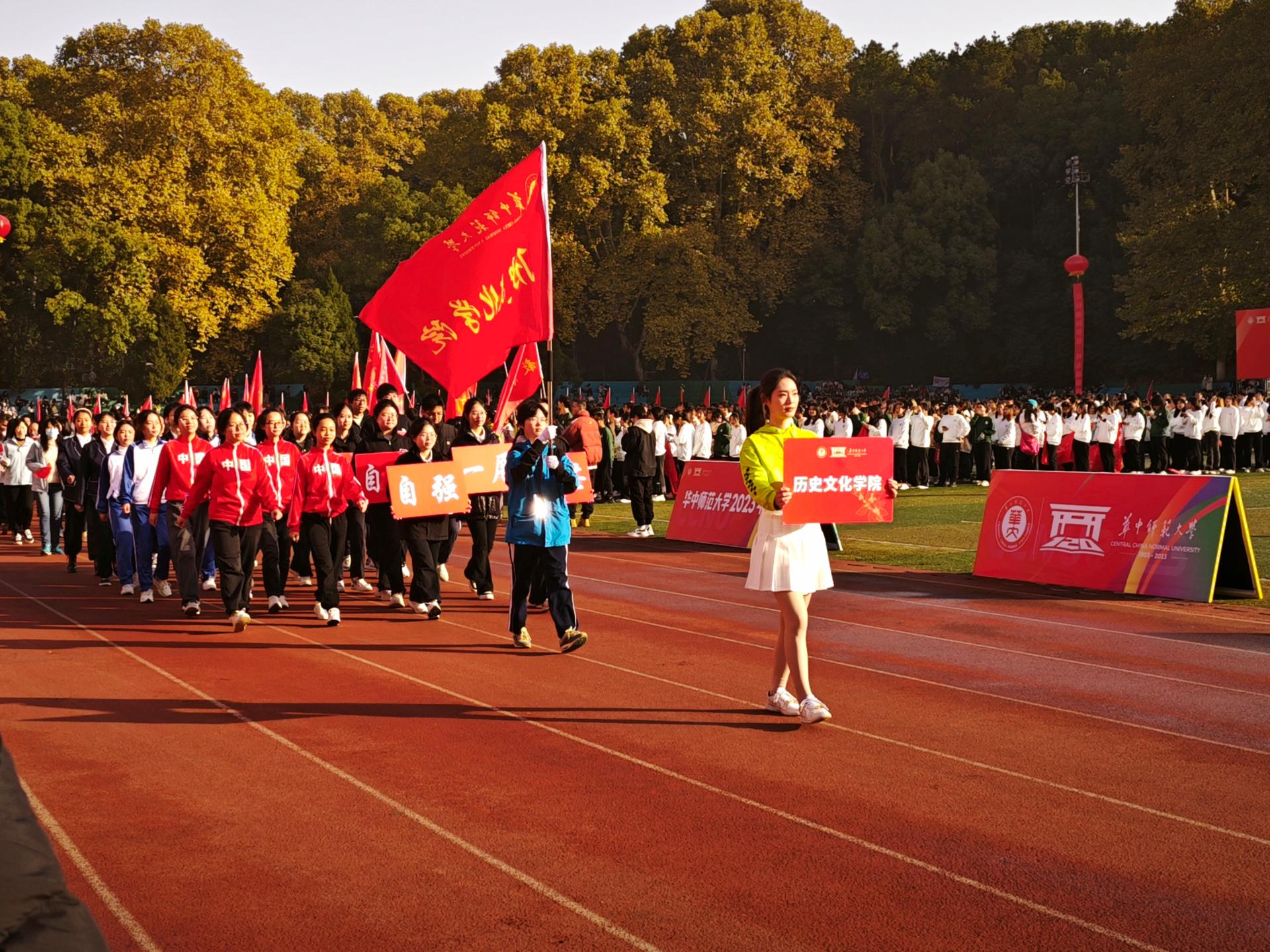 伴随着激昂的音乐,踏着铿锵有力的步伐,历史文化学院(以下简称“历院”)方队身穿统一的服装,带着笑容向主席台走来。“五育并举,回首光辉岁月;全面发展,历院奋勇向前。风华正茂继薪火,热血澎湃未肯歇。”的解说词,展现了历院人团结合作、奋勇拼搏的精神。