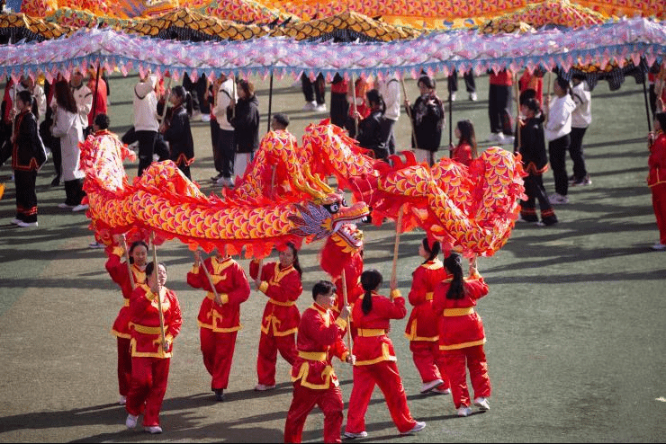 跃动的音乐响起,舞龙舞狮比赛率先开场。历院运动员们配合默契,雄狮与神龙在他们手中回旋跳跃,展现出“滚”“翻”“游”等变化多样、灵活复杂的动作。一跳一扑,一腾一跃,狮与龙时而昂首阔步,时而翻腾扭转,娴熟的动作点燃了在场观众的激情。鲜艳的服装配合震天的锣鼓,历院运动员踏着音乐的节奏,完成舞龙舞狮的表演,场面壮观,气势恢宏。不仅活灵活现地显示出雄狮、神龙威武生动的神态,更表现了历院学子朝气蓬勃、勇往直前的精神状态。