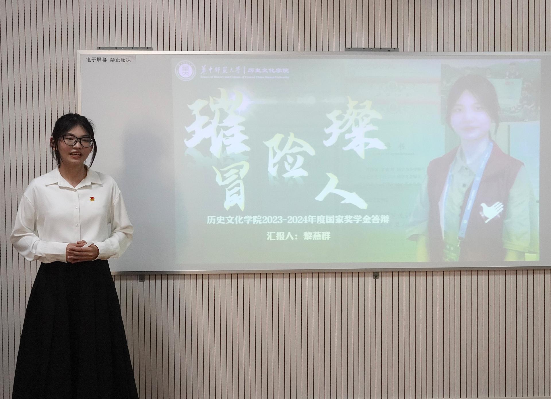 华大青年讯(通讯员 陈镜羽)为做好国家奖学金评选工作,充分发挥国家奖学金的激励、引导作用,9月27日下午,华中师范大学历史文化学院(以下简称“历院”)2024年本科生国家奖学金答辩会在1号楼1215教室举行。出席本次活动的嘉宾有学院党委书记李华忠,党委副书记梁方勇,副院长初庆东(线上),教师代表马冰洁、吕思静,2024级本科生辅导员付佳琪,2022级辅导员李荣,2021级辅导员戴睿,研究生代表张少凡。本次答辩会由2023级本科生王钰涵主持,邀请了部分同学观摩。