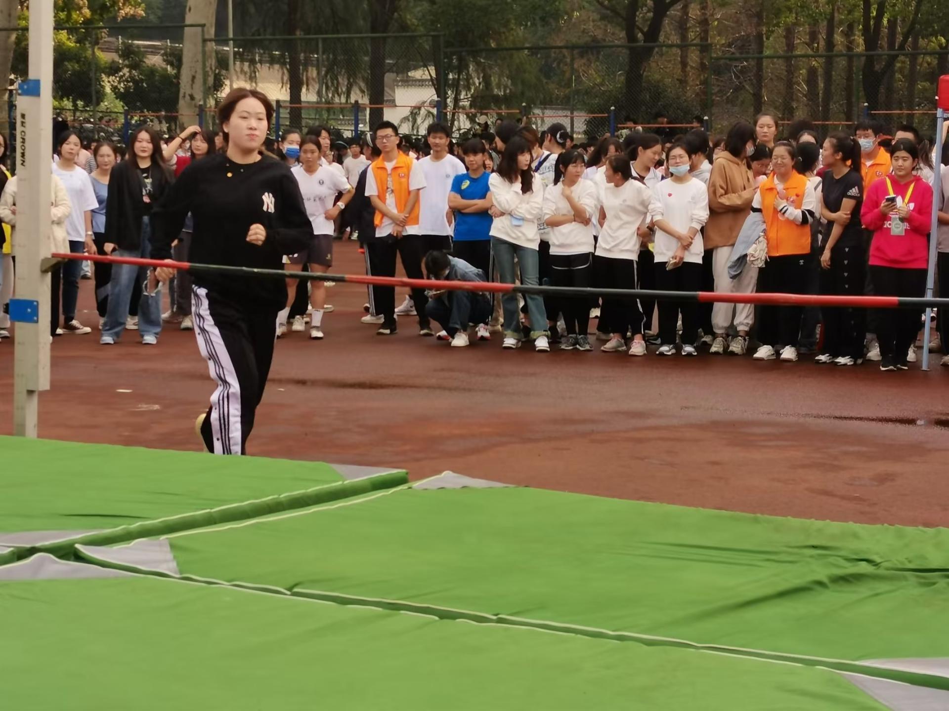 在田赛场地,比赛也正如火如荼地进行。11日下午,学生组女子跳高赛场上群英荟萃。比赛开始前,选手们积极试跳,适应比赛场地,展现出了昂扬的斗志。比赛过程中,公管的运动员们调整呼吸,全力助跑,奋力一跃,用身体在空中划出一道道优美的弧线。与此同时,学生组女子立定跳远比赛也在激烈比拼中。运动员们动作流畅,一次又一次地腾空、跃起、落下,她们面对目标跨出坚定的步伐,只为不断超越。