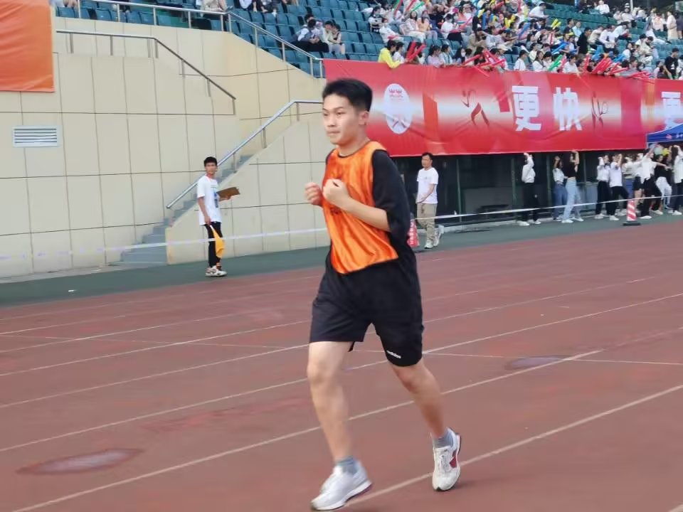 如果说接力赛是团结与默契的比拼,那么1500米长跑就是耐力与意志的考验。在11日下午的男子1500米预决赛中,公管的运动员们在环形跑道上一圈又一圈地坚持,始终保持着昂扬的姿态和奋发的精神。旗帜飞扬,公管的陪跑员陪伴在运动员的身旁,不仅为运动员提供支持和鼓舞,也让他们感受到公管大家庭的温暖。成绩在此刻已不再重要,运动员们的拼搏意志使每一个在场的公管学子都深受鼓舞。