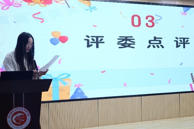 游戏环节过后,评委们对参与本次活动的各个寝室做出了点评。王祎衔对每个宿舍和谐和团结的氛围表示肯定,大家来自五湖四海,性格不同,爱好多彩却融合成了一个大家庭般的集体,并且每一位同学对待生活,对待学习都很积极阳光。孔令莉对每一个寝室展示的内容做了详细点评,并引用南湖十栋201寝室在展示中的一句话:“很少和你说谢谢,觉得太过官方,但此刻好想和你说声谢谢”,表示无论是舍友和朋友,还是家人和恋人,都需要我们的一声“谢谢”。程昕辉也特别提到应该珍惜现在的宿舍生活,珍惜当前的美好情谊。