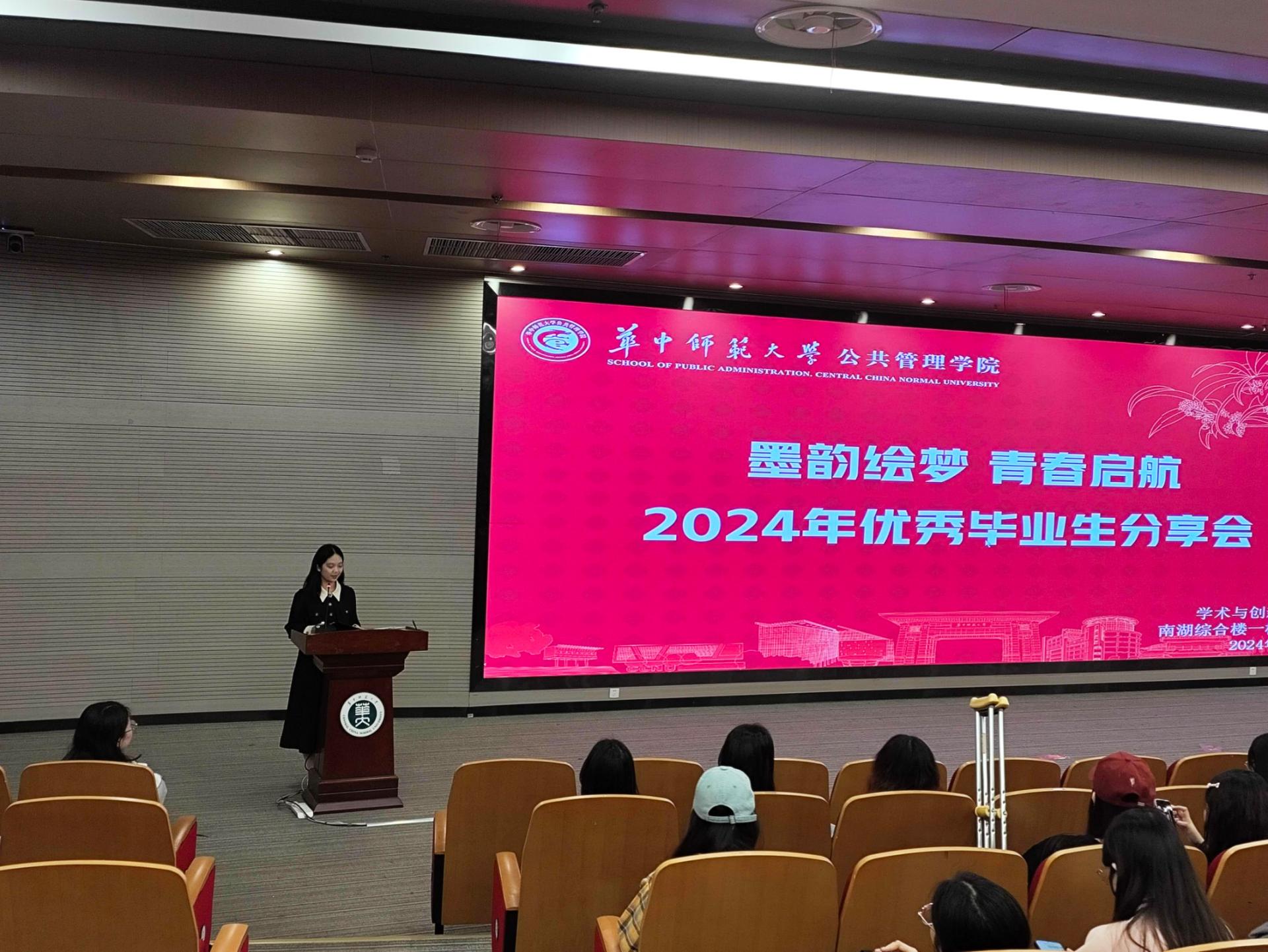 华大青年讯(通讯员 李晓桐 宋羽平)5月5日下午,公共管理学院“墨韵绘梦,青春启航”考研经验分享会在南湖综合楼一楼报告厅举行。2020级行政管理专业本科生陈兆婷、2020级劳动与社会保障专业本科生谭心月、2020级土地资源管理专业本科生常思远受邀分享,2021级、2022级、2023级全体本科生参加活动。分享会由学术与创新创业部部委林诺希主持。