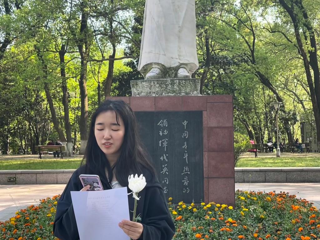 活动伊始,青苗班全体学员集聚在恽代英先生雕塑下。团支书杨一凡宣读倡议书,呼吁全体成员学习恽代英先生“已摈忧患寻常事,留得豪情做楚囚”的民族气节。
