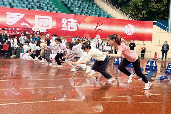 华大青年讯(通讯员 何杨 陈梓盈 袁闯)11月11日上午,华中师范大学运动会在佑铭体育场正式拉开序幕。绿茵场上,运动员们摩拳擦掌、跃跃欲试;大本营内,志愿者们四处奔走、加油助威。突来的雨水并未浇灭运动员们的热情,男子100米、女子100米、50米团体迎面接力赛如期进行。