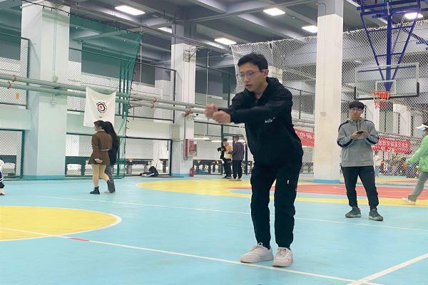 11日上午,跳远比赛的较量正式拉开序幕。外院男子组选手杜旻昊首战告捷,以2.4米的成绩为外院迎来开门红。随后的几位选手也不甘示弱、稳定发挥,逐渐拉开与其他选手的差距。外院男子组的最后一名选手是邱鸿兴,他在起跳前已经做好了十全的准备,屏气、起跳、沉稳落地,最后再创新高,取得2.5米的优秀成绩。赛场上比赛如火如荼,两旁的观众同样热情火热。在一次次的起跳后,观众的呼声愈发高涨,他们用自己的方式为运动健儿们加油呐喊。与此同时,外院立定跳远项目负责人木沙江·吐尔逊在赛场旁不断提醒选手严格遵守比赛规则,为此次比赛保驾护航。