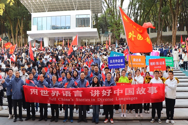 晨风习习,阳光正好,方队入场旗飘扬。各学院代表团依次进入会场,身着各具特色的服装,以良好的精神面貌,通过多彩的表演形式表现出华师学子的风采。随着运动员进行曲的旋律,外国语学院代表团身着统一服饰入场。他们手持红旗,高举外院各系的手牌,拉起写有“用世界语言,讲好中国故事”的横幅,彰显出胸怀祖国、放眼世界的信念。在主席台前列队后,代表团带来舞蹈《一起向未来》,他们手持彩球,随着鼓声,用舞蹈诠释对美好未来的期盼,高声喊出“阳光外院,活力无限”的口号,展现出外院积极向上、开拓进取的风貌。