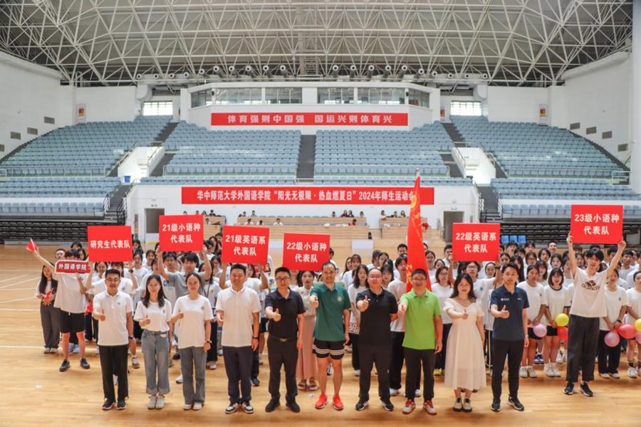 华大青年讯(通讯员 陈舒娴 裴郅玮 陈婕 冉如玲)为激发学生运动热情,培养团队协作与拼搏进取的体育精神,汇聚青春力量,5月26日上午,外国语学院“阳光无极限 热血燃夏日”2024年师生运动会在佑铭体育场进行。本次运动会由华中师范大学大学生体育(健康)教育中心和外国语学院主办,外国语学院团委承办。