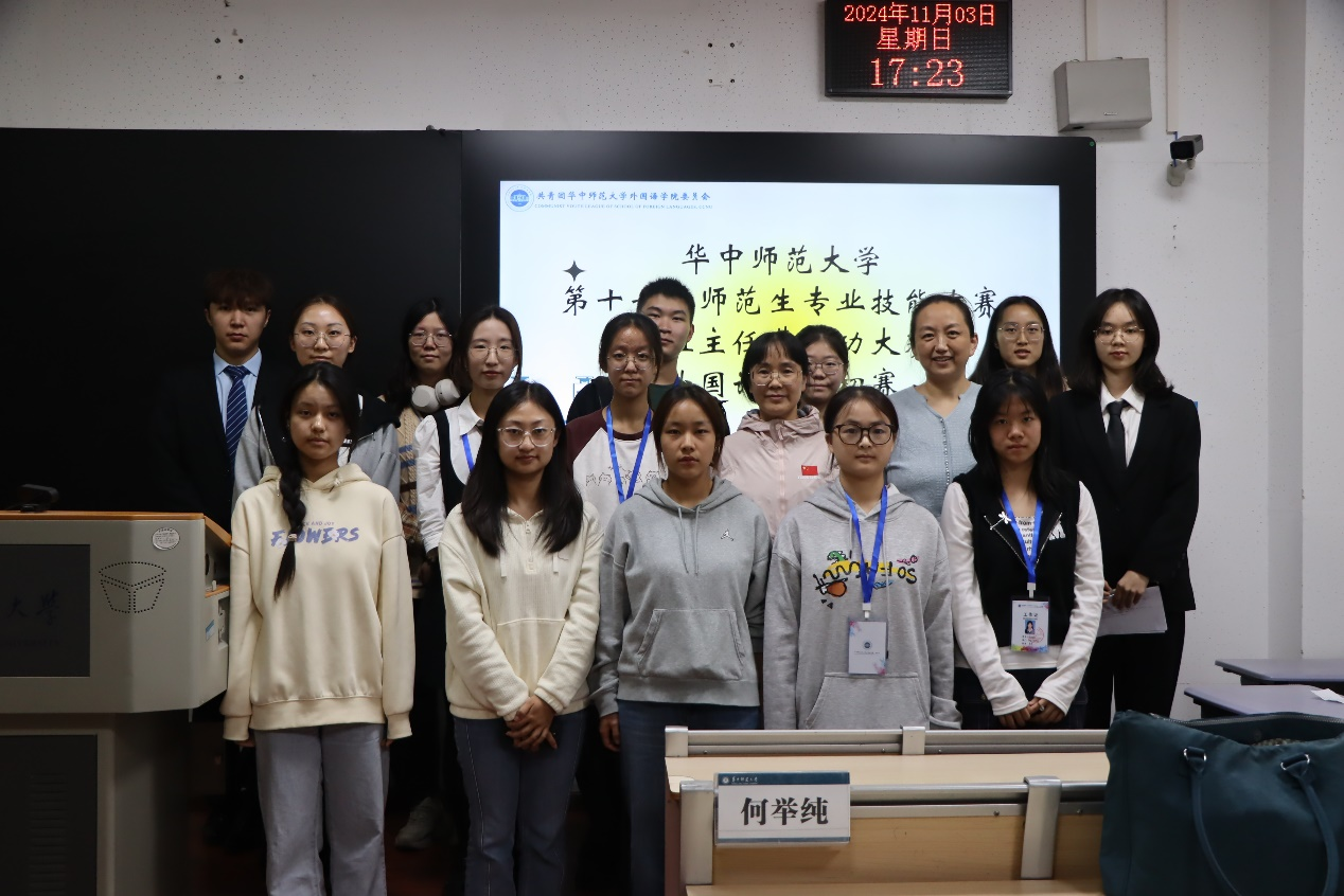 华大青年讯(通讯员 吕雅玲 王思涵 李锐)为提升师范生的班主任工作技能,强化其教育实践能力,为其未来投身教育事业奠定坚实基础,11月3日下午,外国语学院(以下简称“外院”)在3202教室举办华中师范大学第十七届师范生专业技能大赛之“班主任基本功大赛”外院初赛。外院教师何举纯、向宗平、余波担任本次评委,外院英语系24级本科生方艺涵担任主持人。