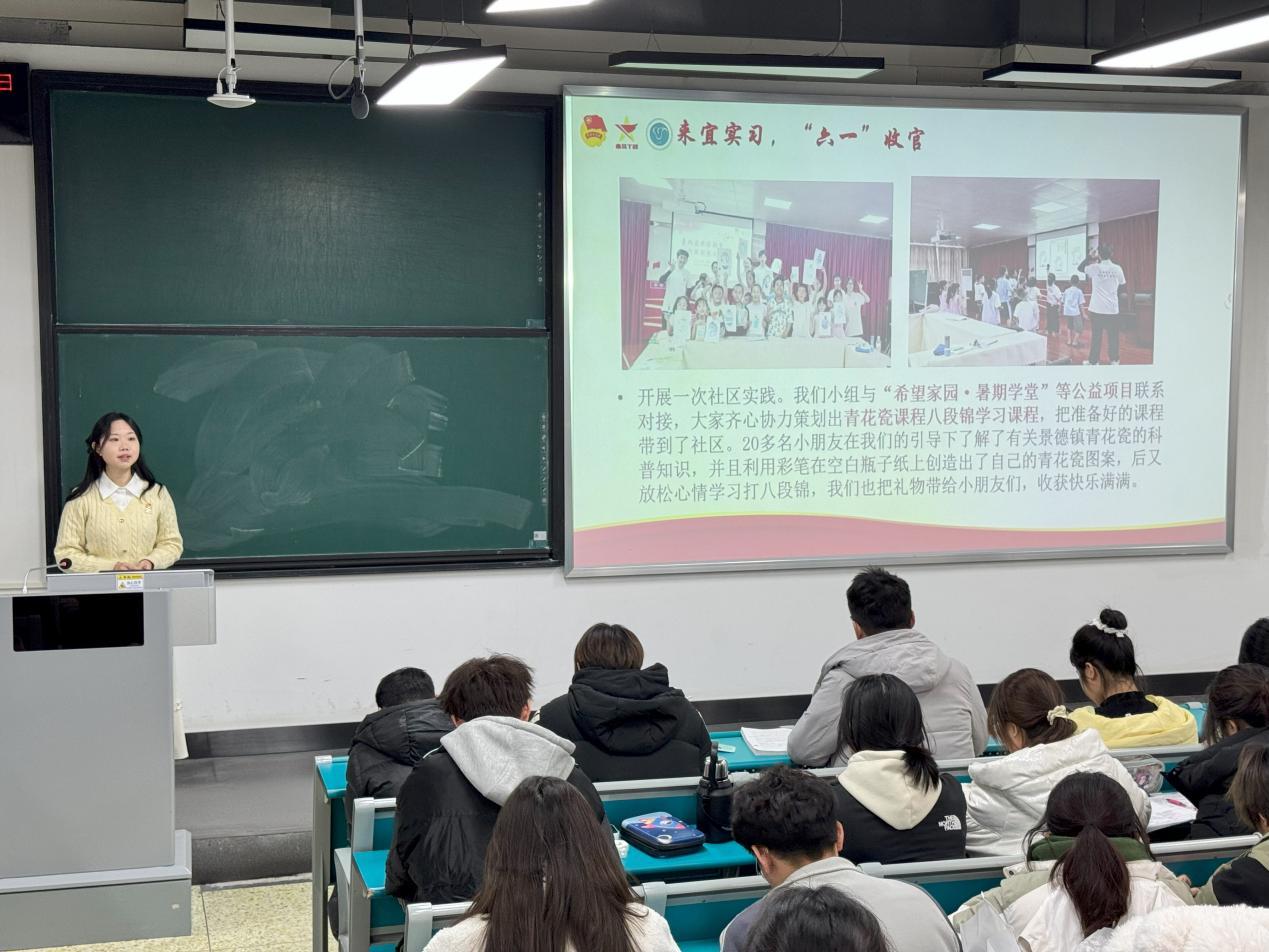 24级小语种的主题为“工作合格,幸福满格——从社区网格员工作中汲取学生工作智慧”。李婉颖分享自己跟随恽代英菁英学校实践队前往武昌参与社会实践并担任社区网格员的经历及工作收获。此外,她以组织社区文化活动为例,强调 “理论+实践” 对学生工作的重要性,从学习和实践两方面为同学们提供了有益启发。青年榜样们以实际行动展现了青年的担当与责任,激励着每一位学子以更加饱满的热情投身于学习与社会实践中,为实现个人梦想和国家发展贡献自己的青春力量。