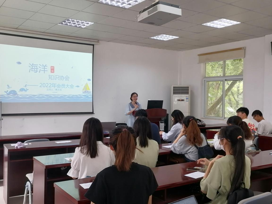 黄才润在会议之出带领全体会员回顾了海协的发展史。六年间,海协一直秉承“宣传海洋知识,提高大学生海洋意识”的宗旨,举办了一系列与海洋相关的活动。2021年,海协协办了第13届全国海洋知识竞赛华中师范大学校内选拔赛,定期举办蓝色周末、海洋知识大讲堂等常规活动,积极配合社团指导中心和挂靠学院的工作等。在全体会员的努力下,海协稳步发展,获得了2021年度“五星级社团”和“十佳社团”的光荣称号。