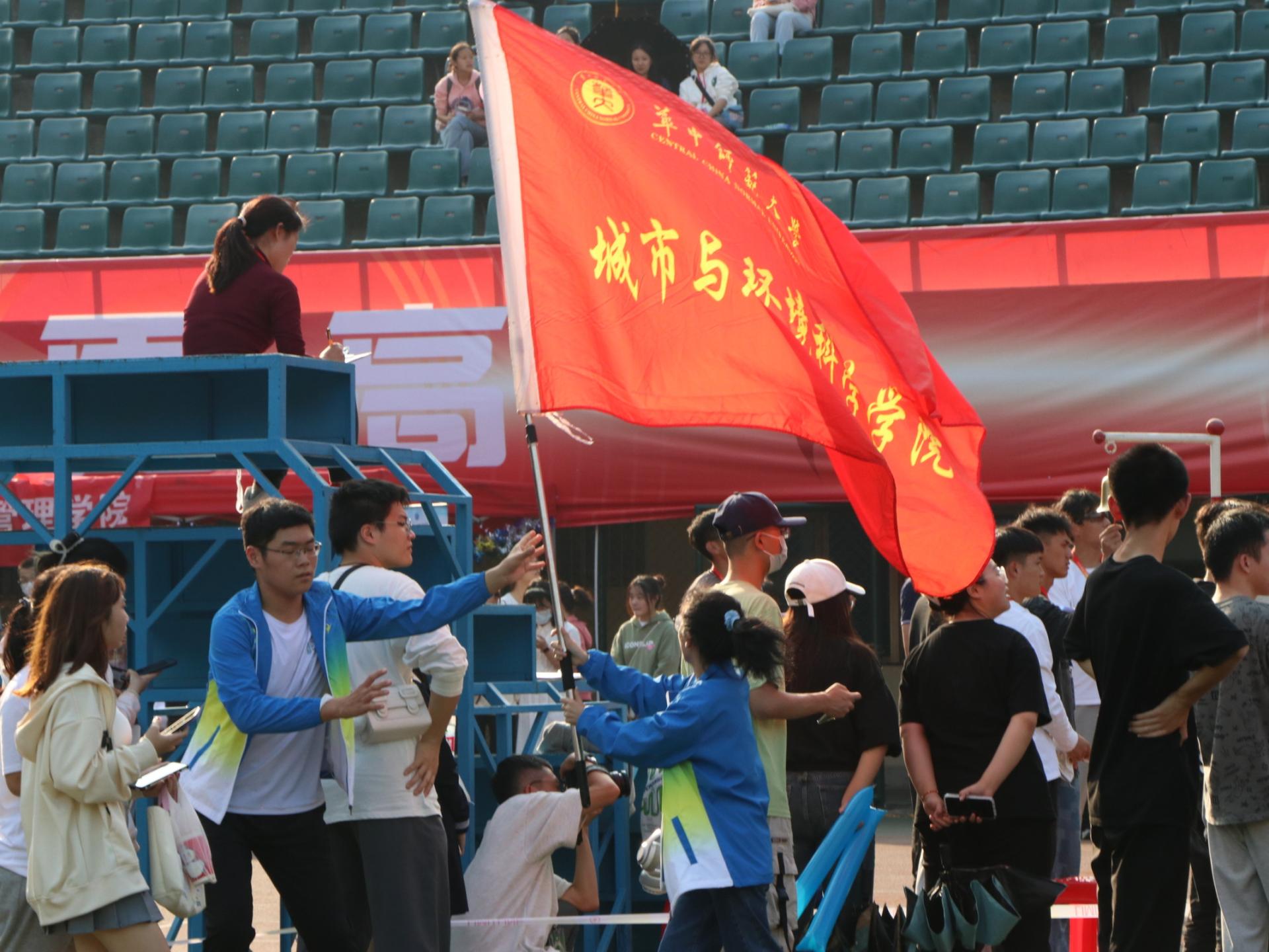 比赛过程中,更有一群志愿者全程陪伴运动员在骄阳下奔跑。他们身扛院旗,神采奕奕,与运动员并肩前行;他们眼中有光,脚步坚毅,在操场上留下美丽的身影。院旗从他们手中走过,将城环精神接续!