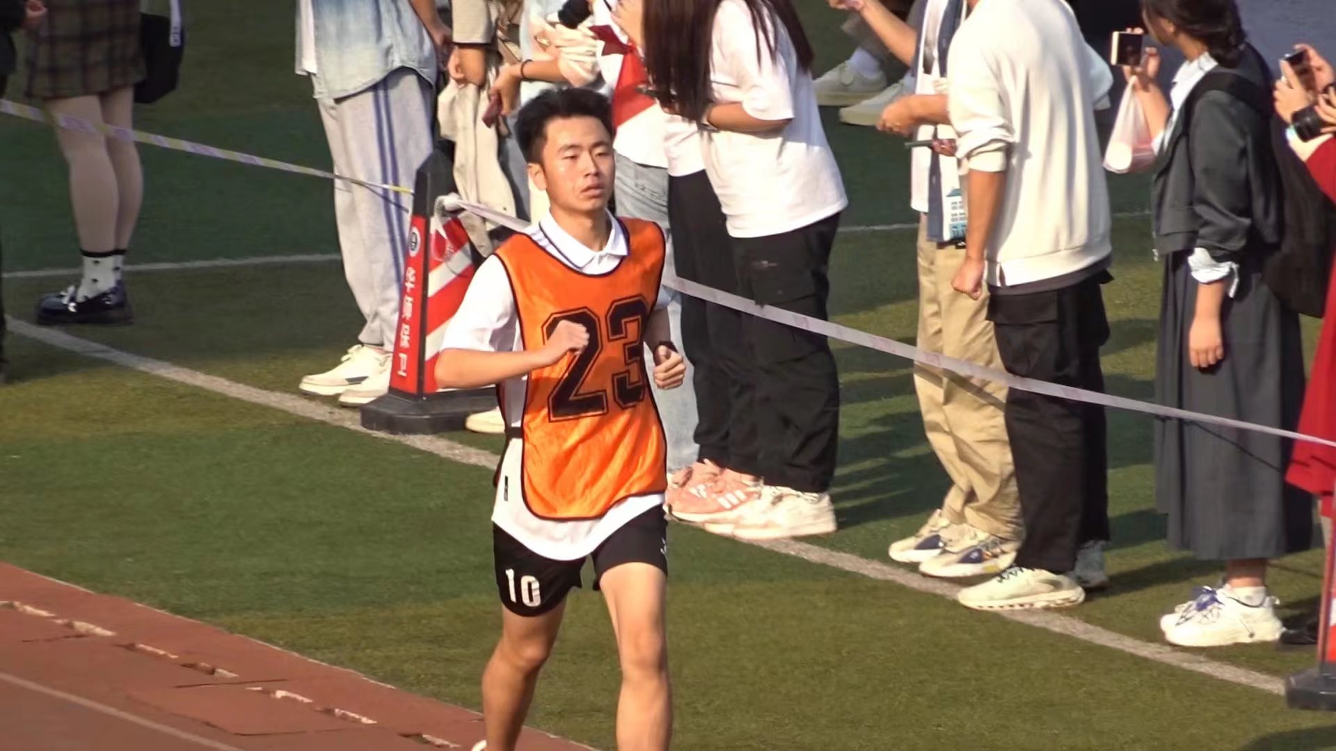 随着裁判员一声令下,第一组小组赛展开激烈角逐。王宇轩稳步行进,与其他运动员保持稳定距离。临近终点,他奋力冲刺,超越了身边两人,取得了不俗的成绩。赛后,王宇轩表示:当听到同学们的加油呐喊时,全身就有了往前冲的力气,这也是支撑他跑到最后的精神动力。