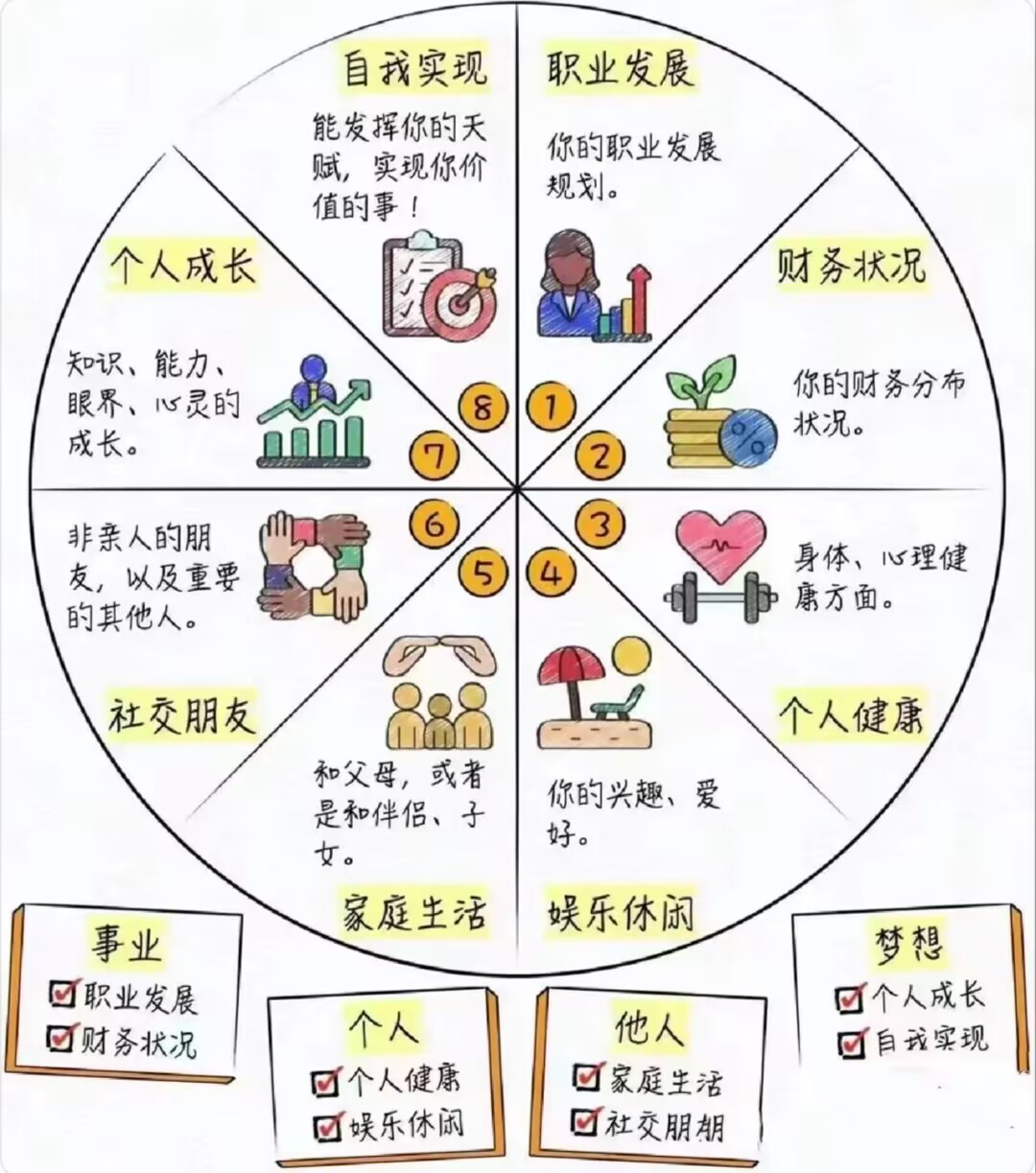在介绍计划管理中,王曼玉为学生介绍了一个工具——“生命之花平衡轮”。该工具包扩个人成长、自我实现、职业发展、财务状况在内的目标型内容以及包括健康、娱乐休闲、家庭、朋友与重要他人在内的关系型内容。学生们可通过合理地制定计划,并计划趋向平衡,让自己的学习生活更加从容。