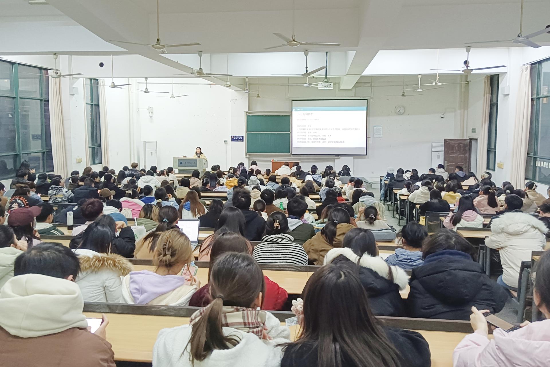 辅导员王曼玉通过倒序的方式为同学们梳理了未来两年学生将重点关注的事情和时间节点,并以年为单位梳理了一年之中将举办的考试和比赛,使同学们对未来几年的时间节点基本了解,并引导学生多渠道搜集信息,对未来学习生活进行统筹规划,做好时间管理。