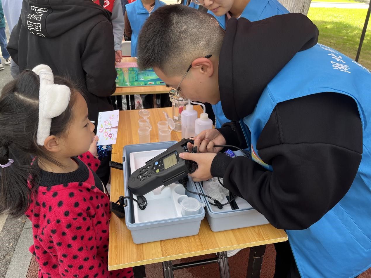 志愿服务嘉年华展区,城环青协以“爱我千湖·绿色华师”主题,充分发挥专业特色,将生态文明理念和雷锋精神相结合,通过湖泊保护知识科普、水质检测体验、“湖泊·双碳”飞行棋游戏三个板块的互动展示,将知识科普、实验器材体验、游戏互动融为一体,弘扬生态文明,传承雷锋精神。2021级地理科学专业何旭表示:“‘爱我千湖·绿色华师’志愿服务环保行使我将专业知识应用到生态文明建设实践,切实践行无私奉献的雷锋精神,深入挖掘雷锋精神的时代内涵,这也将激励着我继续投身环境保护志愿服务。”