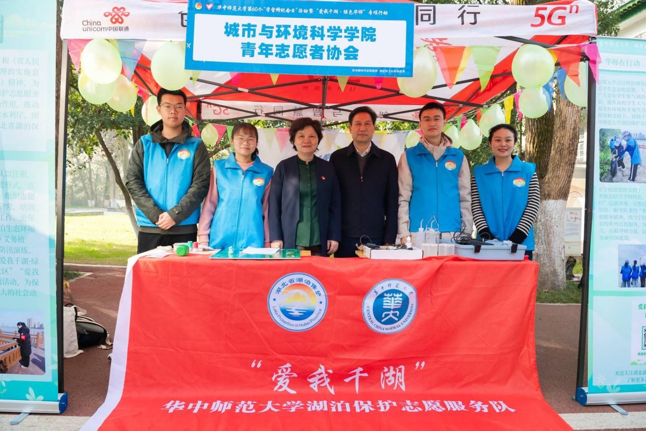校长郝芳华与湖北省水利厅党组成员、总经济师熊春茂一行也来到展区交流,充分肯定青年大学生参与湖泊保护系列志愿服务并为“爱我千湖·绿色华师”湖泊保护志愿服务活动的开展提出建议,鼓励城环青协开拓志愿服务的深度和广度,为湖泊保护与治理积极奉献华师力量,展现当代大学生建设美丽中国的使命担当。