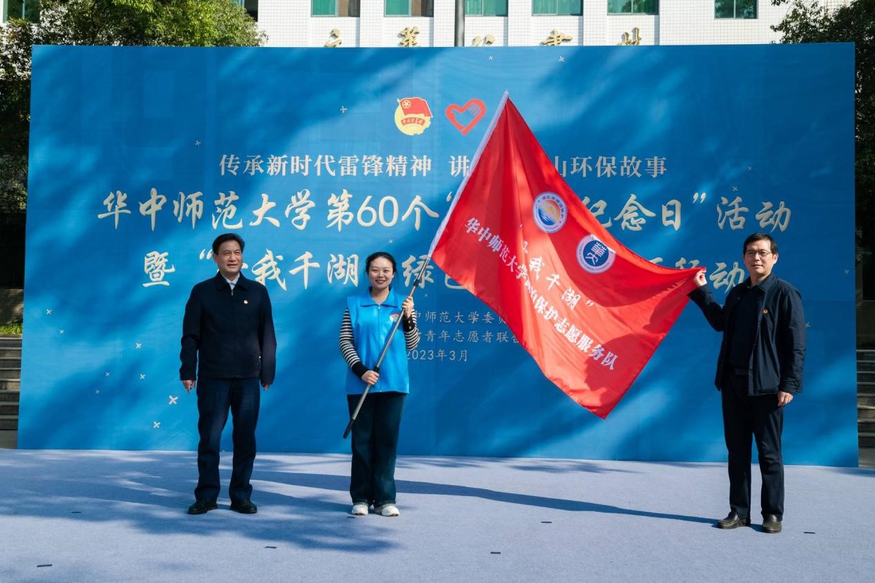 为深入学习党的二十大精神,学习践行习近平生态文明思想,大力弘扬志愿服务精神,在湖北省湖泊保护中心和学校团委的指导支持下,“爱我千湖”华中师范大学湖泊保护志愿服务队成立。湖北省水利厅党组成员、总经济师熊春茂为服务队授旗。城环青协设计开展巡湖净滩、水质检测、宣教等系列活动,打造环保特色鲜明、活动形式多样的系列志愿服务,为湖北湖泊保护工作贡献华师力量。
