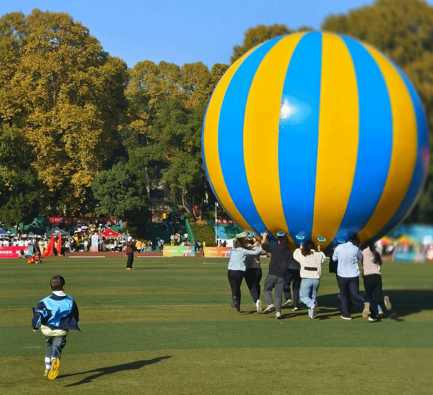 涂振发等10名老师代表城环学院参与教工组运转乾坤比赛。赛场上的他们,从教学模式“切换”成运动模式,神采奕奕,斗志昂扬。哨声响起,比赛开始,老师们一同举起巨大的彩色气球,奋力向前,小组优势明显。紧张的比赛节奏催生相同频率的默契,城环教师们移动步伐,迅速换位,在运动场上形成一道亮丽的风景线。