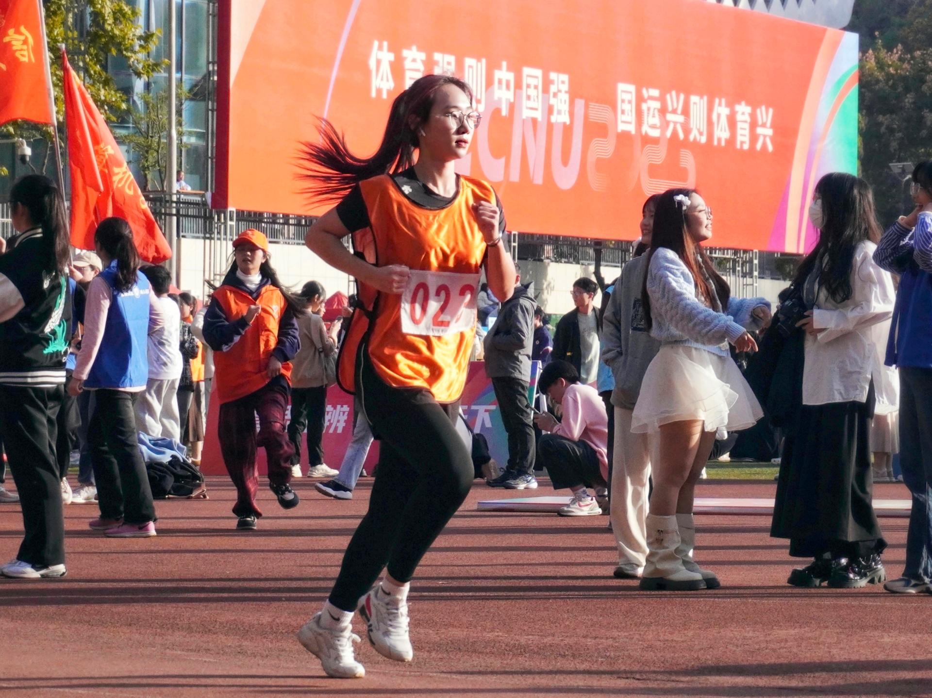 徐晨曦、郝欣怡、邓光映代表城环学院参加女子400米比赛。她们迎着阳光奔跑,协调的动作和昂扬的气质是一道和谐优美的风景线,全场的目光都聚焦在她们身上。在观众席的呐喊助威声中,运动员们咬紧牙关奋力坚持,不到最后一刻绝不放弃。迈步跨越终点的那一刻,沸腾的欢呼与掌声,为这场青春的拼搏画上了句点。
