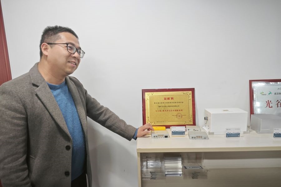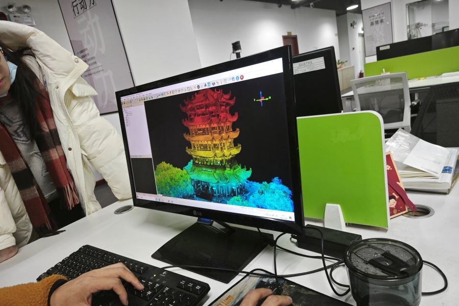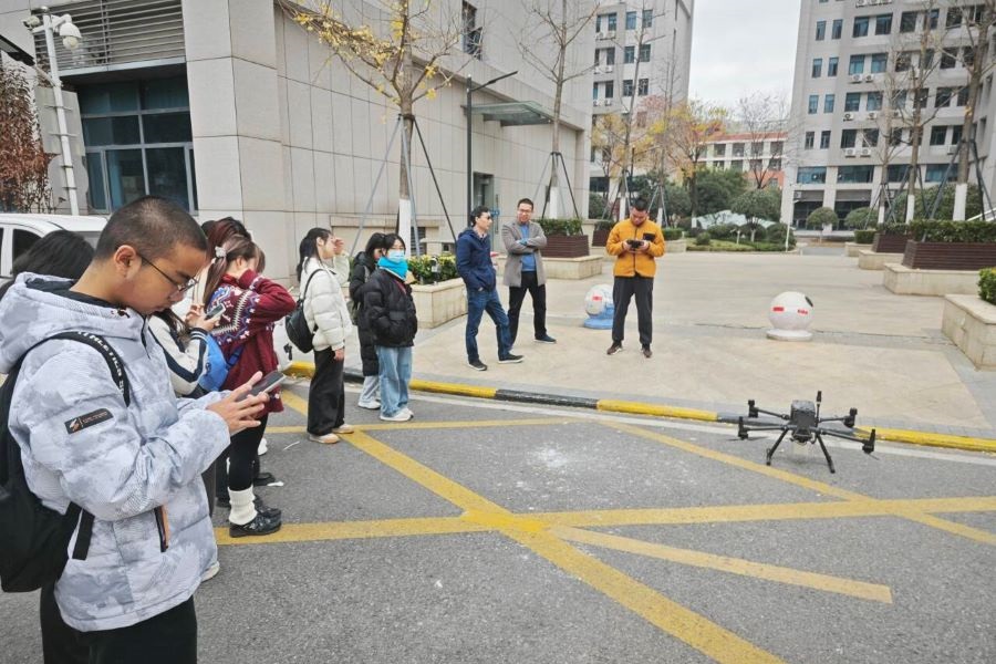 在武汉际上导航科技有限公司,公司副总经理刘杰给介绍了该公司无人机激光雷达、手持激光雷达的研发与市场应用情况,并和公司技术骨干以天颐科技园为地理空间数据的采集对象,现场演示了最新研发的专业设备采集地理空间数据的方法与过程,指导学生学习了解无人机的飞控知识与激光雷达的优势。
