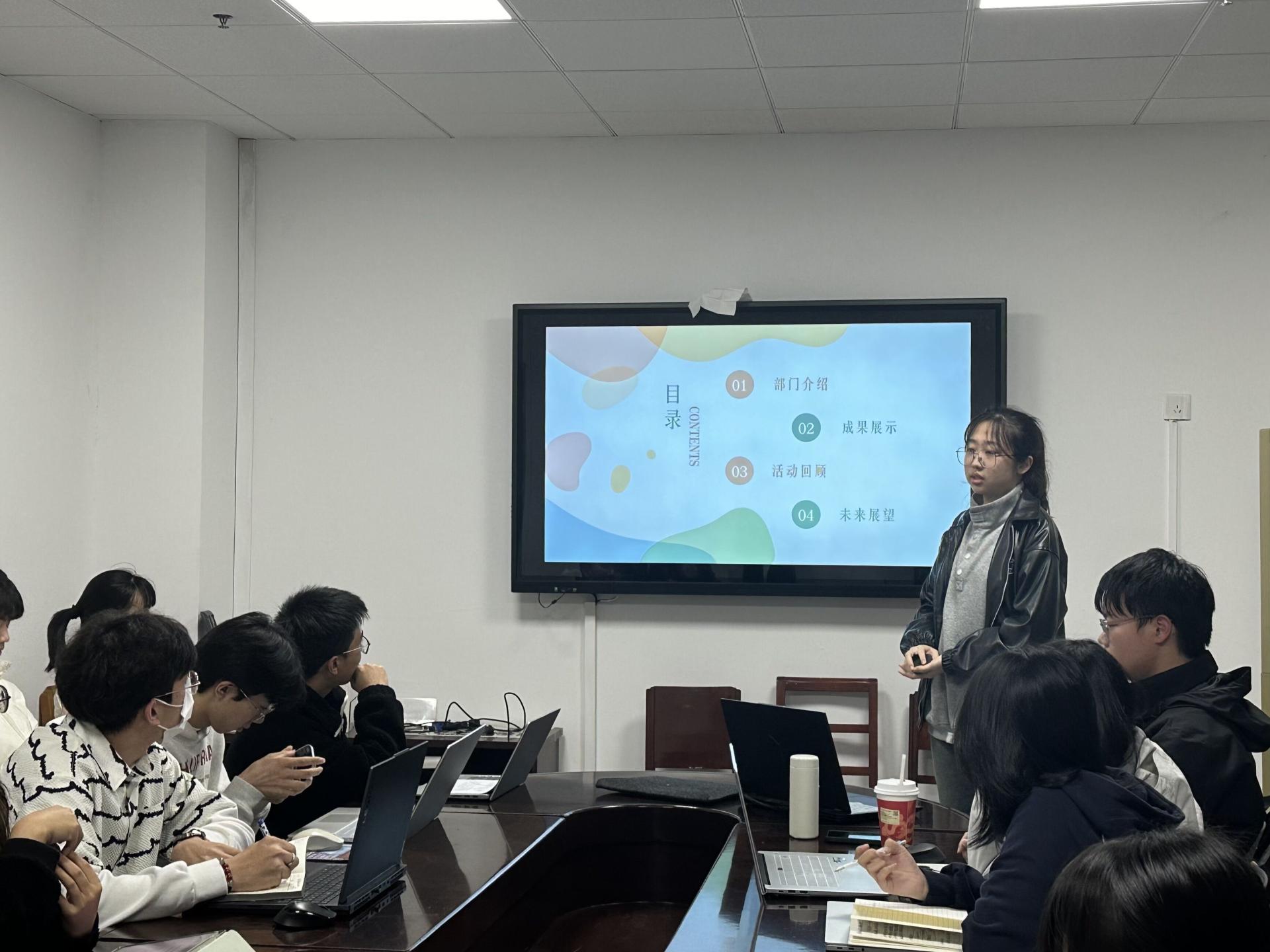 城环学院青协成员辛静微对上学期青协工作进行述职。她分别从部门介绍、成果展示、活动回顾和未来展望四个方面展开介绍,向青志联汇报城环学院青协概况、基本分工和各部门的工作情况,为后续的交流研讨打下了良好的基础。