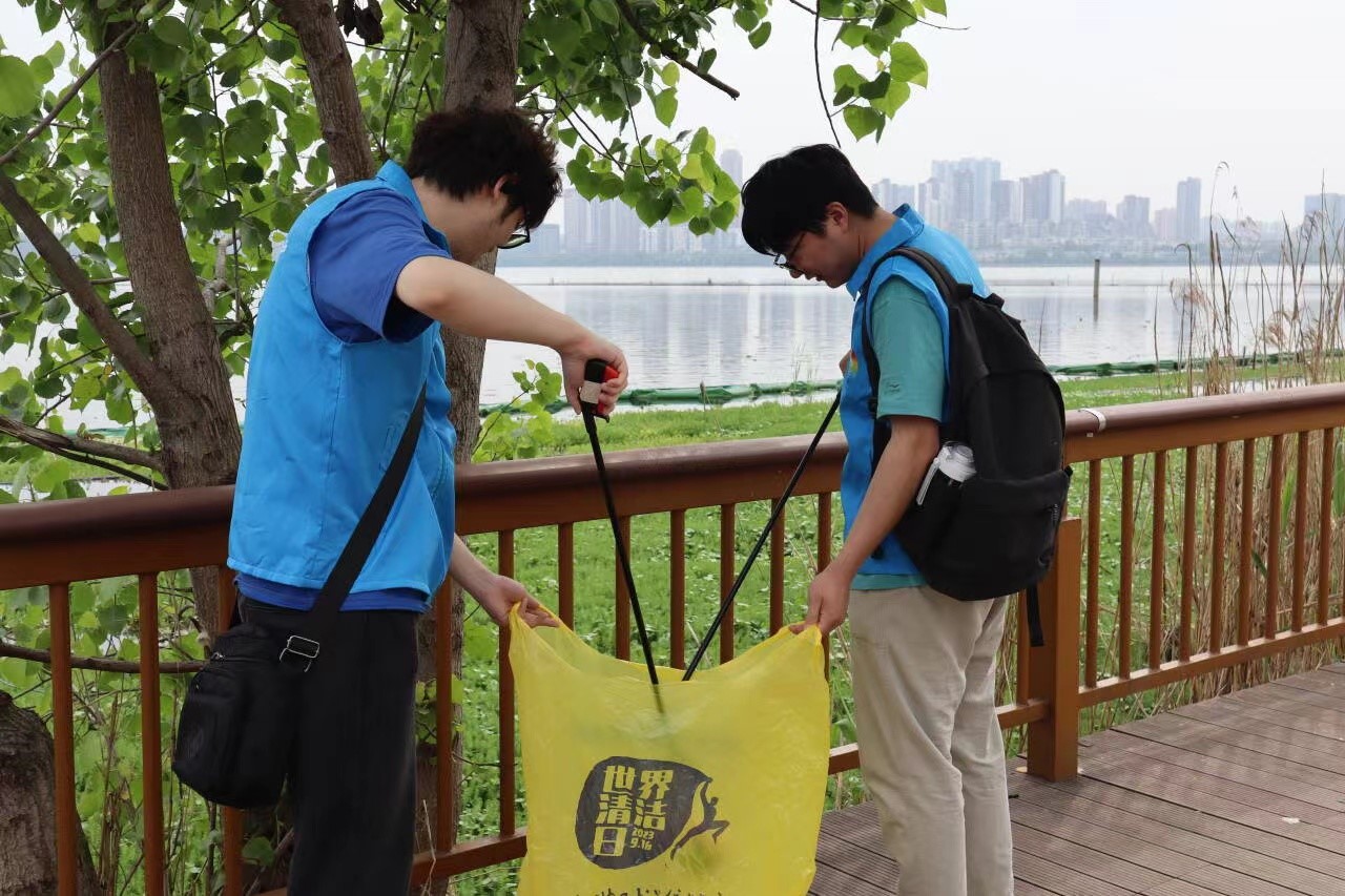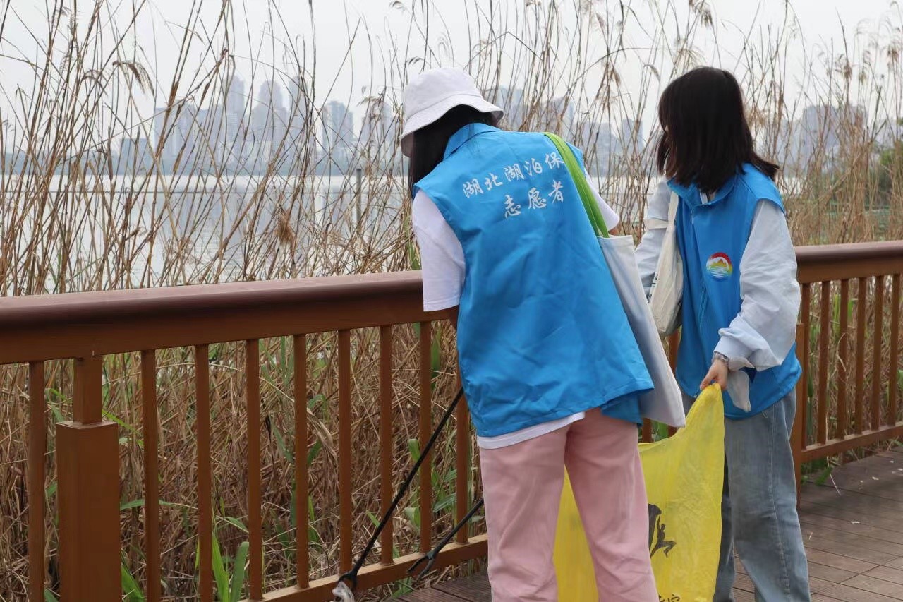 循着南湖栈道,“爱我千湖”志愿服务队成员两两结伴,分工协作,共同清扫环湖游人留下的塑料垃圾,从“捡塑”行为践行环保观念,为“减塑”行动付诸青年力量。同时,“爱我千湖”湖泊保护志愿者们留心观察湖畔环境,发现沿途栈道安全隐患和便民基础设施不足,拍摄记录并及时向相应负责部门对接反馈,共同助力南湖环境的洁净维护。
