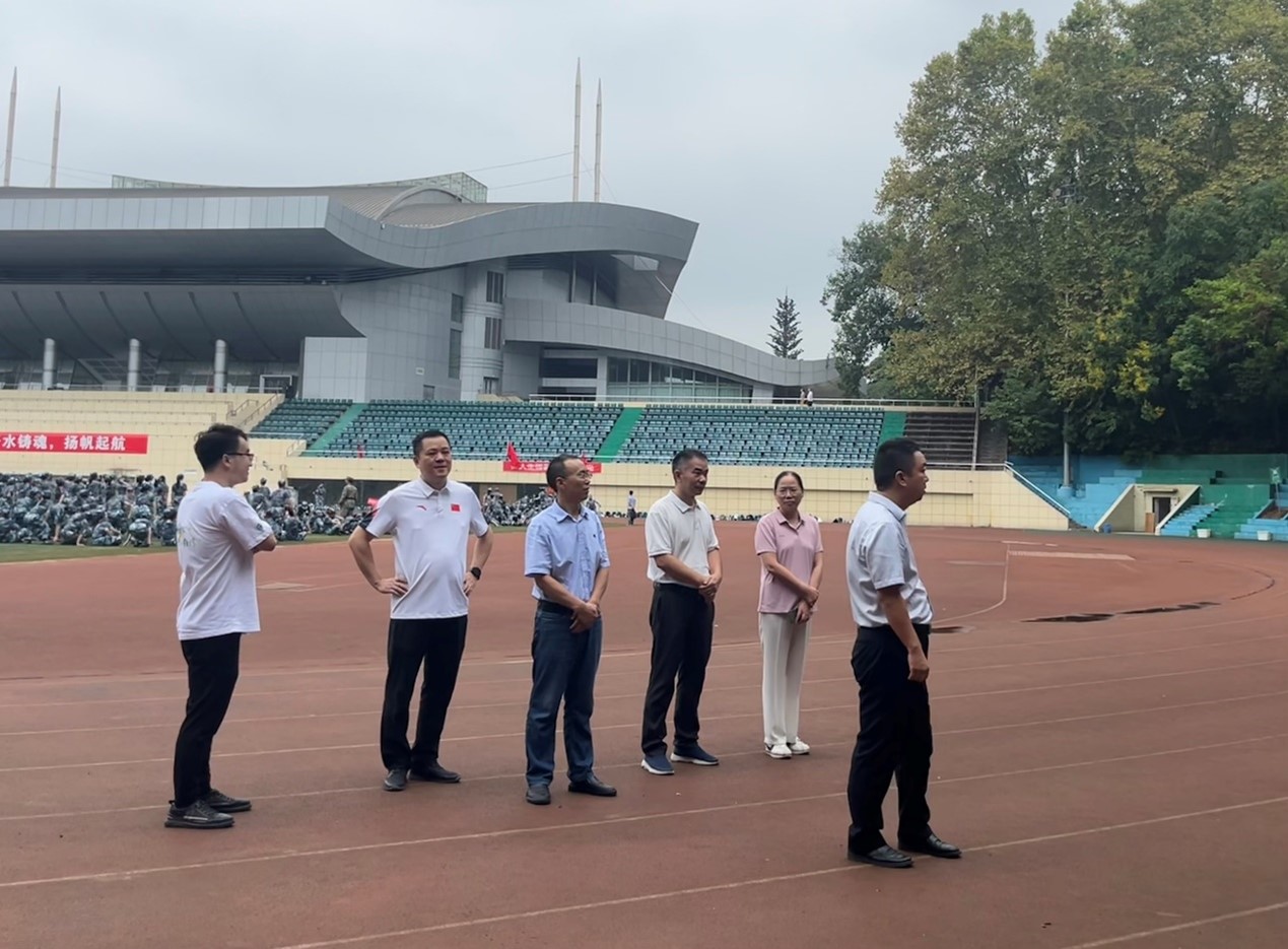 华大青年讯(通讯员 王丽娜 沙乔怡 张晴)2024年9月13日,在中秋来临之际,城市与环境科学学院(以下简称“城环学院”) 党委书记吴成峡,正处职组织员曹慧东,副院长黄建武、刘目兴,党委副书记李志雄,院办主任杨毅,院团委书记刘新星,院团委副书记李澳一行前往佑铭体育场,看望并慰问2024级学生,为正在进行军训的新生们送去中秋关怀,并分发月饼等物资。