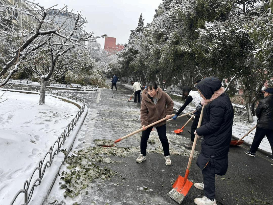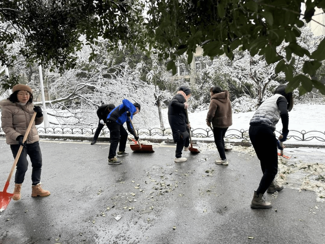 为深入贯彻落实习近平总书记关于低温雨雪冰冻灾害防范应对工作的重要指示精神,在应对低温雨雪冰冻天气中充分发挥学校基层党组织战斗堡垒作用和广大党员先锋模范作用,切实维护师生安全和校园秩序,让党旗在冰雪一线高高飘扬,2月5日,在学校党委的坚强领导下,生命科学学院党委以雪为令,组织教师党员干部和志愿者开展扫雪除冰志愿服务活动,用实际行动扫出“平安路”,全力保障5号楼周边道路畅通,护航师生出行安全。