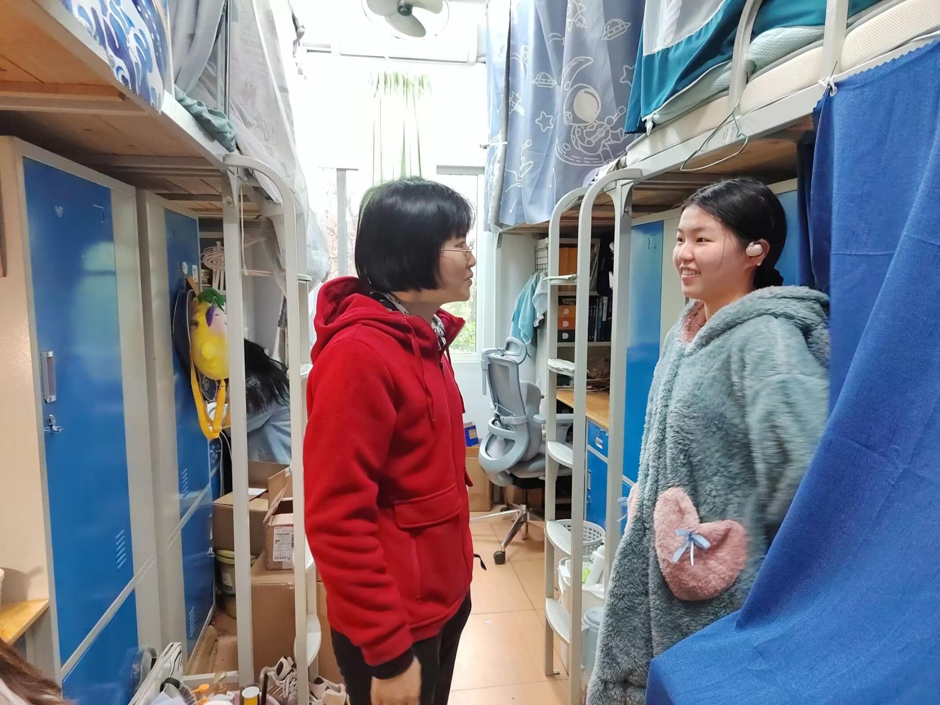 在宿舍走访过程中,老师们与学生进行了友好交流。各班主任十分关注学生在学业和日常生活中的近况,为学生答疑解惑,引导学生实行健康的生活方式,重视宿舍安全,维护寝室环境整洁,建议寝室成员之间、寝室与寝室之间互帮互助和谐共处,共建文明寝室。交流结束后,老师还和学生们进行了合影留念。