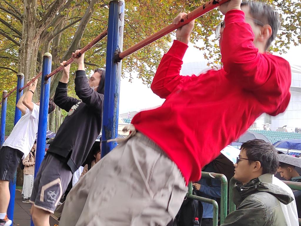 华大青年讯(通讯员 刘晋玮)11月5日下午,男子组引体向上决赛在佑铭体育场进行。马克思主义学院(以下简称“马院”)2020级本科生余楚权、2021级本科生陈正鹏等十一位男生参与本次比赛。