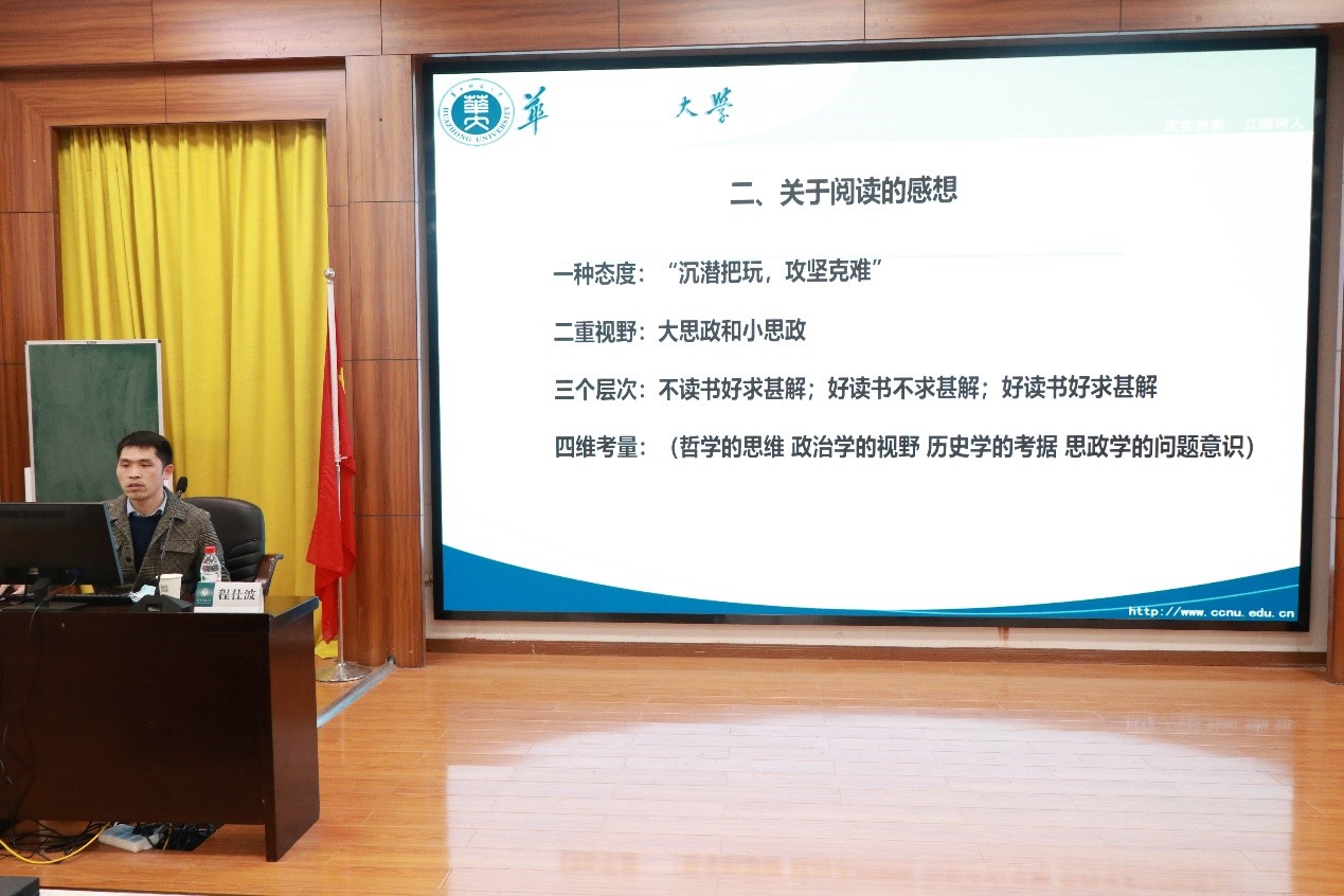 活动伊始,程仕波从论文风格、研究价值、严谨态度和语言精练四个方面分享了对马克思主义学院学子科研写作的认识。谈及阅读,程仕波以武侠门派为例,形象地讲述了打好基本功、拥有一本“看家书”的重要性。同时,程仕波指出,阅读要多突破自己的舒适区,多涉猎难读、难懂的书,拓展自身视野,提高看问题的高度,掌握不同科研论文的写作视角,提升科研写作的敏感度。