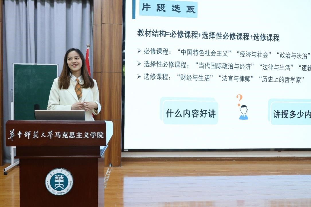 主讲人方思佳以恽代英讲课大赛的教学设计模板为引入,围绕片段选取、教材分析、学情分析、教学目标、教学方法、教学过程、板书设计七个方面讲解了教学设计撰写的方法与技巧。她结合自身经历,辅以具体实例指出同学们在实践中可能出现的问题并提出建议。此外,她还强调,教学设计要突出学生的主体地位,注重对学生的引导。