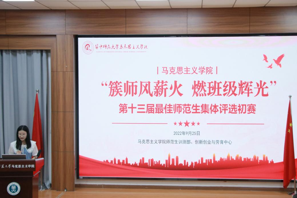 华大青年讯(通讯员 黄楚宇)9月25日,华中师范大学马克思主义学院第十三届最佳师范生集体评选初赛在1号楼1101教室举行。2022级本科生辅导员田聪娇,学生团委副书记项文慧、史可佳、吴宇凡出席本次活动并担任评委。活动由师范生训测部负责人田桂菊主持。