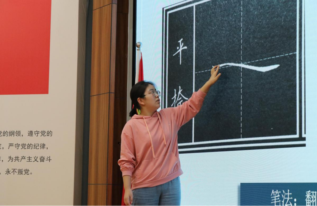 文化沙龙开始,主讲人龚若楹就粉笔字书写的方法与技巧进行经验分享。她从基本练习、板书设计与比赛技巧三方面分享粉笔字书写的经验,并结合自己在日常教学中的具体案例来进行直观阐释。龚若楹通过对学校粉笔字比赛中优秀作品的点评与展示,逐步呈现粉笔字书写的实用技巧。此外,她还指出钢笔字、毛笔字与粉笔字三者之间的关系,强调要抛弃自己原有的错误书写习惯,通过钢笔字和毛笔字的学习触类旁通,提高粉笔字书写能力。