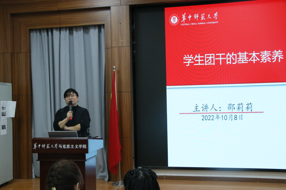 随后,邵莉莉为团委、学生会新成员讲授开班第一课。在课上,邵莉莉对新加入的成员表示欢迎并表达了对第二十六届团委、学生会的期望。她结合学院学生工作的实际情况和自身实践经验,详细讲解了共青团、共青团干的相关知识。同时,邵莉莉对马院团学干部提出要求,希望大家能够以高标准要求自己,明晰团学干部肩负的使命与担当,共同努力打造具有马院特色的优质活动。