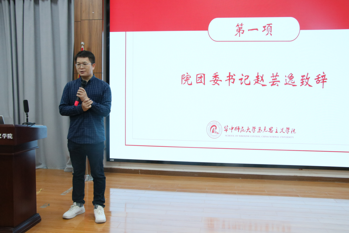第一次全体大会上,赵芸逸进行致辞。他回顾了往届团委、学生会的工作成绩,以此勉励第二十六届团委、学生会携手同行、再创辉煌。与此同时,他还指出了团委、学生会目前发展存在的不足,希望各部门能够继续秉持初心、不断提升自我技能,为构建更加优秀的团委学生会而共同奋斗。