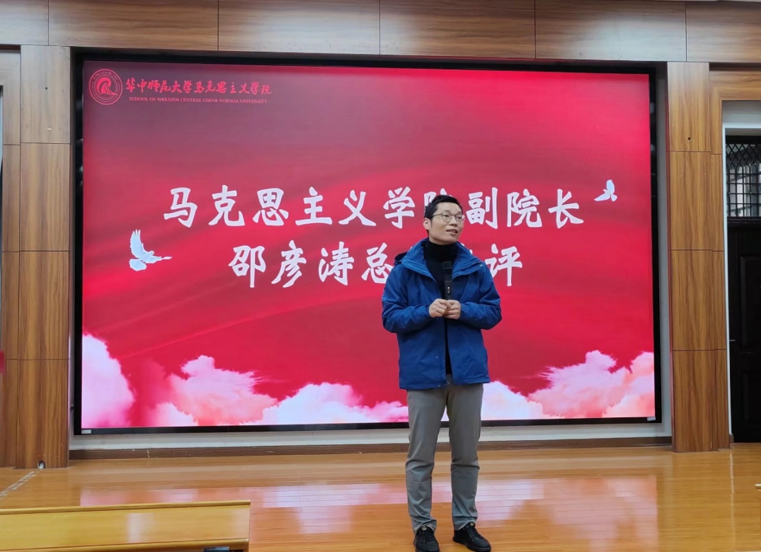 在最后的总结环节,邵彦涛对各实践团队取得的成果给予高度肯定,赞扬马院学子积极投身社会实践,鼓励青年用实力将情怀落到实处,重点关注新时代发展中形成的新现象、新特征、新面貌,成为一名堪当民族复兴大任、理想信念坚定的新时代青年。