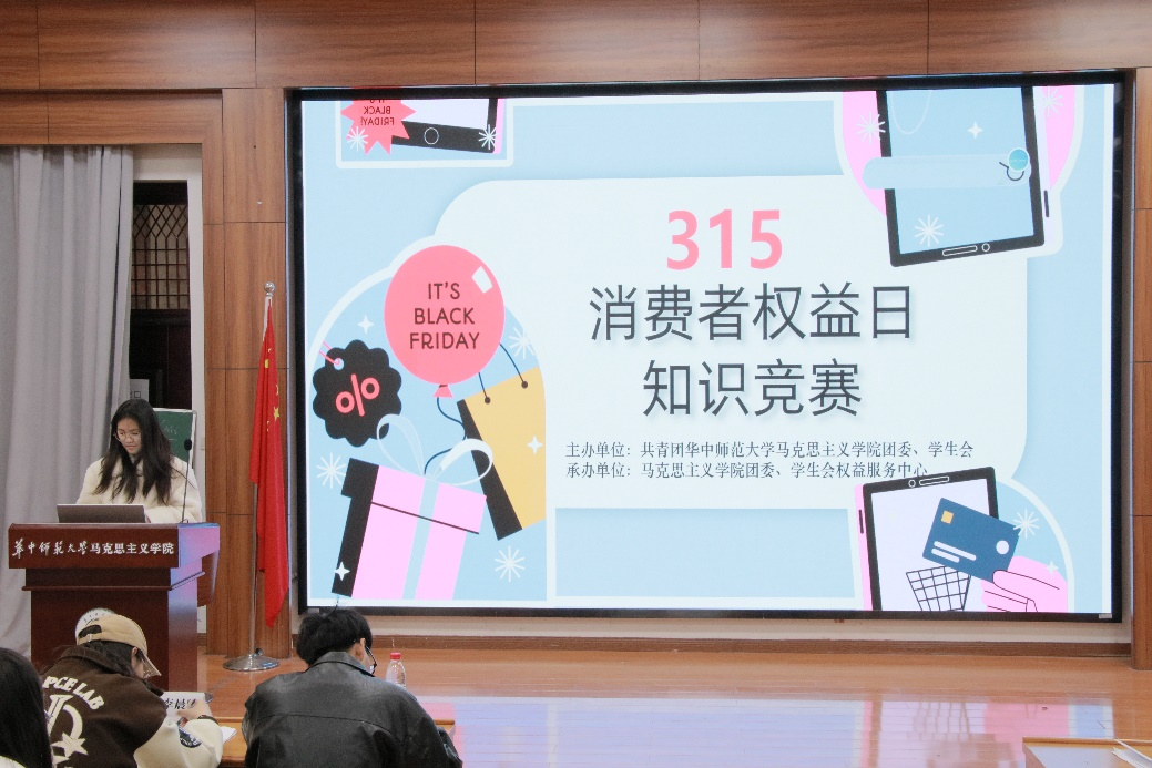 华大青年讯(通讯员 吴金铭)3月19日上午,马克思主义学院团委、学生会权益服务中心在一号楼1101教室举办“3·15消费者权益日”知识竞赛活动。马克思主义学院2021级辅导员程金松、学生会副主席李晨曦出席本次活动。活动由权益服务中心成员黄婷源主持。