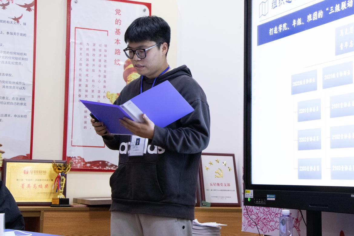 在本次活动中,王清晨代表明德青协进行协会工作内容分享。他首先从组成人员、协会宗旨等方面详细介绍了明德青协的组织架构,随后又介绍了明德青协的常规活动和各类特色活动,并分享了协会在组织各类论坛、大型会议志愿服务活动时收获的经验。最后,他详细介绍了明德青协近年来所获得的各项荣誉,并系统阐释了协会未来的发展方向。